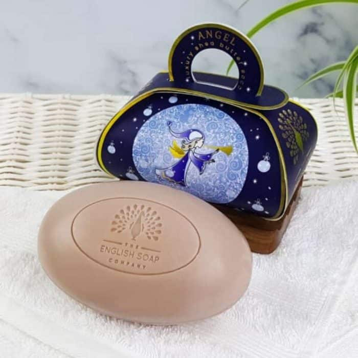 De Christmas Angel Gift-zeep heeft een zachte bloemige geur met een opbeurende toon van zoete vanille en topnoten van dauwbraam en mandarijn. Deze zeep is verrijkt met hydraterende sheaboter en voedt en hydrateert alle huidtypes.