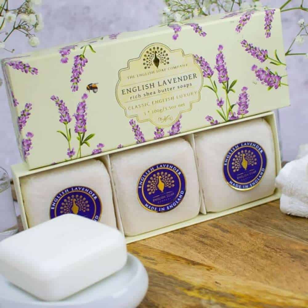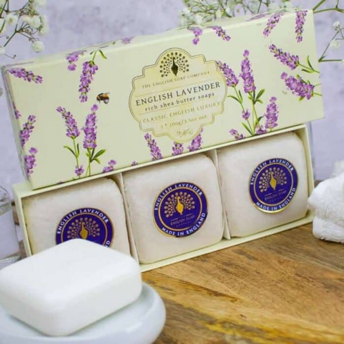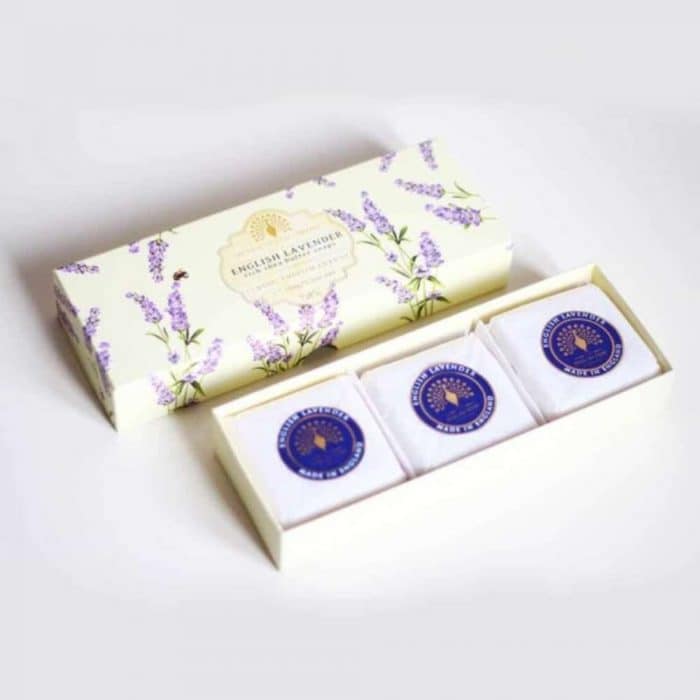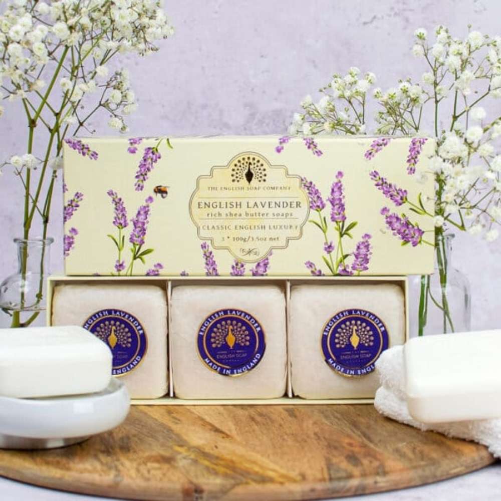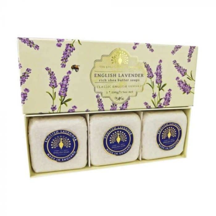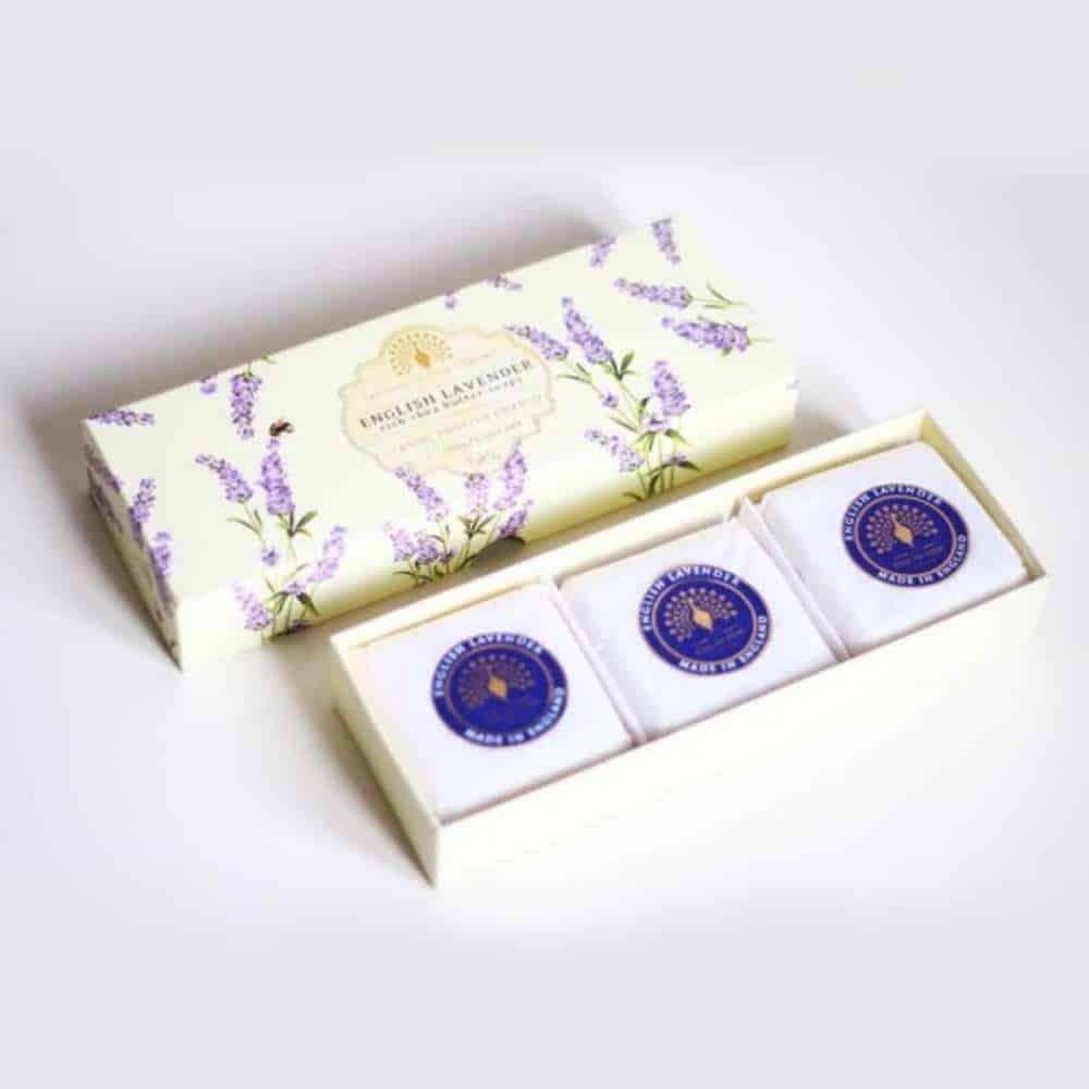 Geef een heerlijke geur cadeau met de Engelse Lavendel Handzeep Cadeauset. Deze giftbox bevat drie individueel verpakte handzepen van 100 g, perfect gepresenteerd in een geschenkdoos, versierd met een typisch Engelse tuin-geïnspireerde illustratie.
