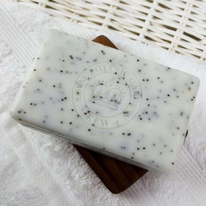 Luxe zeep met citroengras en limoengeur, uit de zeepcollectie van Kew Gardens. Deze vochtinbrengende sheaboterzeep is fris en pittig, met een geur van citroengras en limoen met mooie tonen van zoet en citrus. Samen met tonen van groen gras wordt de geur evenwichtig en verfrissend. Deze zeep bevat maanzaad om de huid te helpen exfoliëren. De papieren omslagen zijn bedrukt met prachtige illustraties die zijn geselecteerd uit de historische archieven van Kew Garden om het product zijn unieke ontwerp te geven.