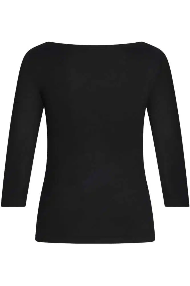 De Boatneck Top Black Tricot Deluxe van Very Cherry is een veelzijdige en tijdloze basic die in geen enkele garderobe mag ontbreken. Deze top heeft een elegante boothals en driekwart mouwen met een subtiel splitje aan de zijkant van de mouw, wat zorgt voor een verfijnd detail. De aangesloten pasvorm benadrukt het vrouwelijke silhouet zonder in te leveren op comfort.