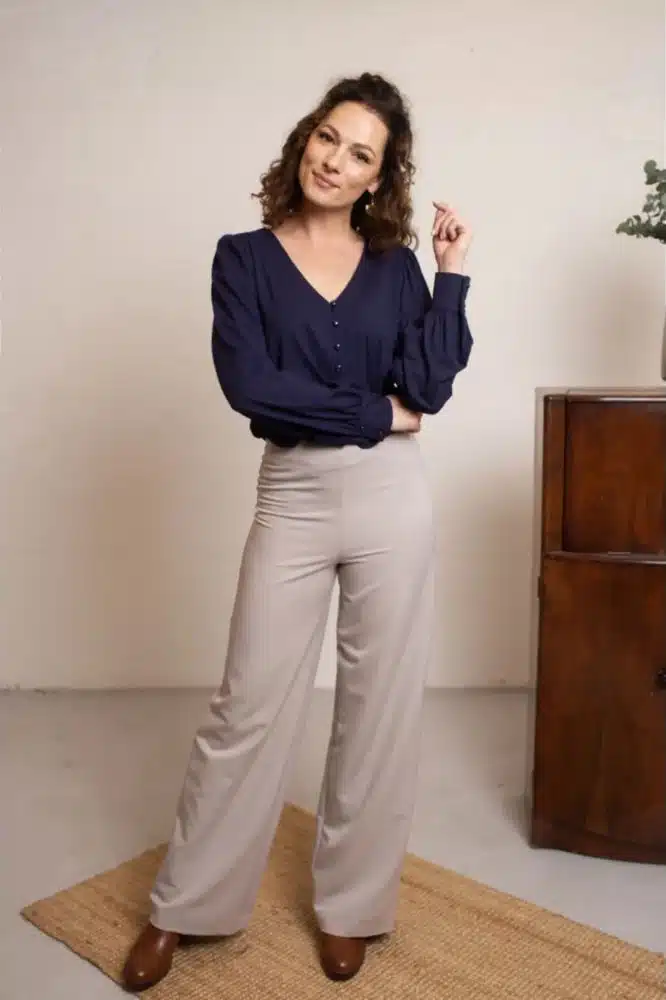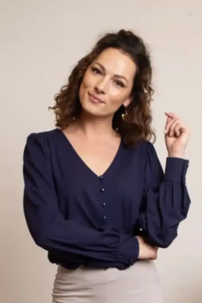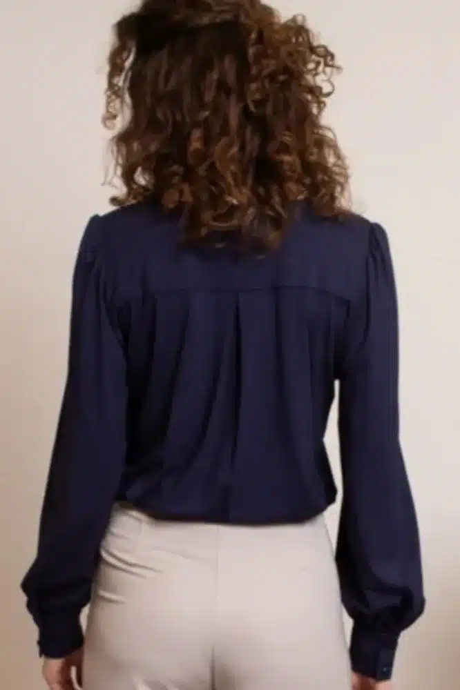De Celia Blouse is ontworpen in een diepe navyblauwe tint – tijdloos, veelzijdig en geschikt voor elke gelegenheid. Dankzij de lichte stretch in de stof beweegt ze soepel met je mee, terwijl de manchetten en de knoopsluiting aan de voorkant zorgen voor een verzorgde, vrouwelijke uitstraling. De losse fit maakt het een flatterend model voor uiteenlopende figuren. Combineer de blouse met een kokerrok voor een zakelijke look, of met een high-waist jeans voor een casual maar stijlvolle outfit.