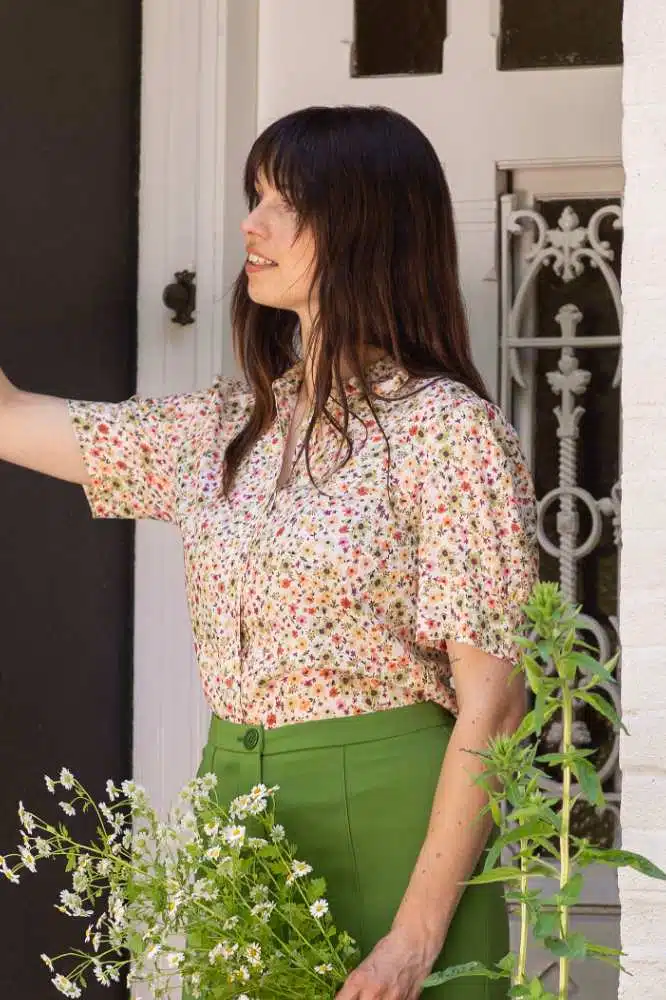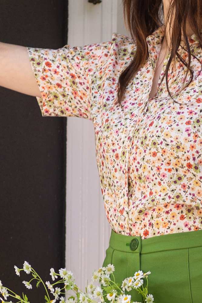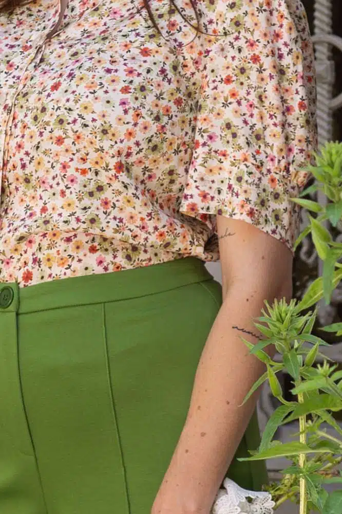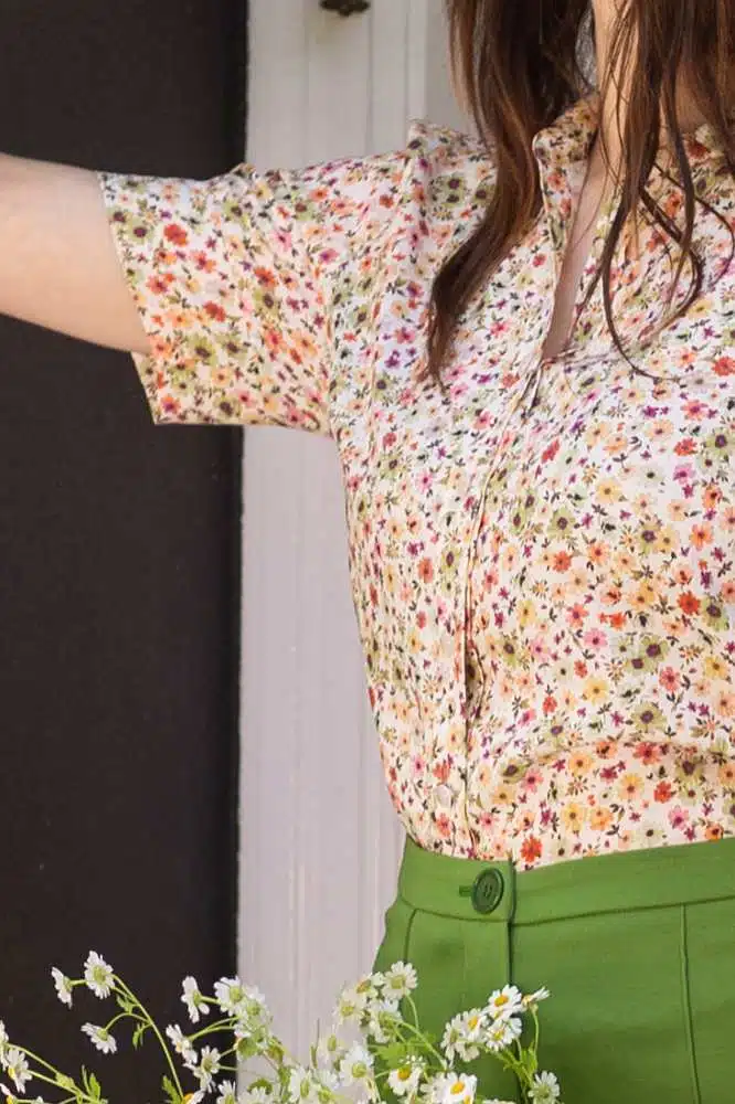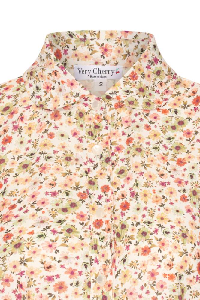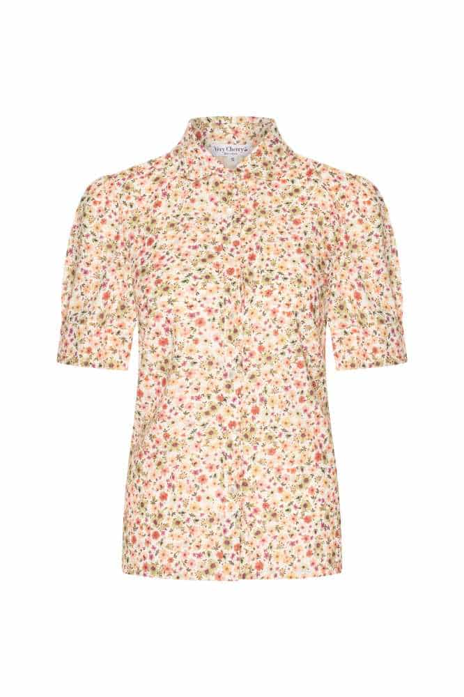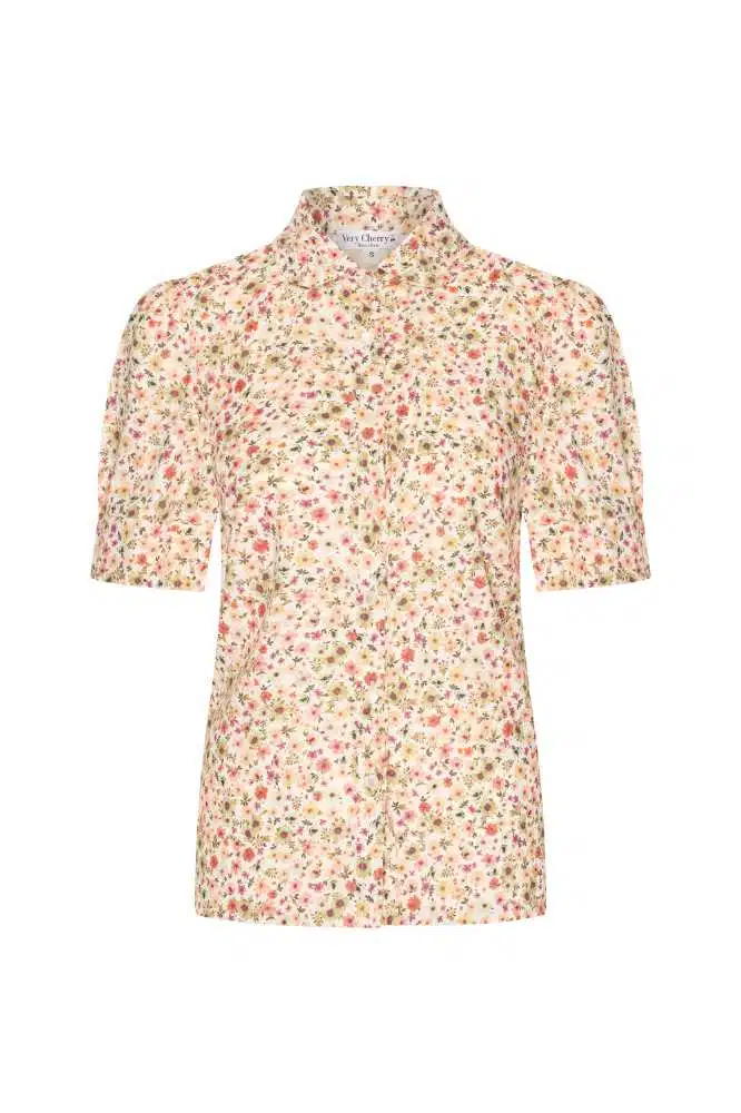 De Classic Blouse Flores van Very Cherry is een tijdloze en vrouwelijke toevoeging aan je garderobe. Met zijn elegante ronde kraagje, licht poffende korte mouwen en een getailleerde pasvorm straalt deze blouse klassieke charme uit. De knoopsluiting aan de voorzijde geeft het een speelse en verfijnde uitstraling, terwijl de kleurrijke bloemenprint een vrolijke touch toevoegt.