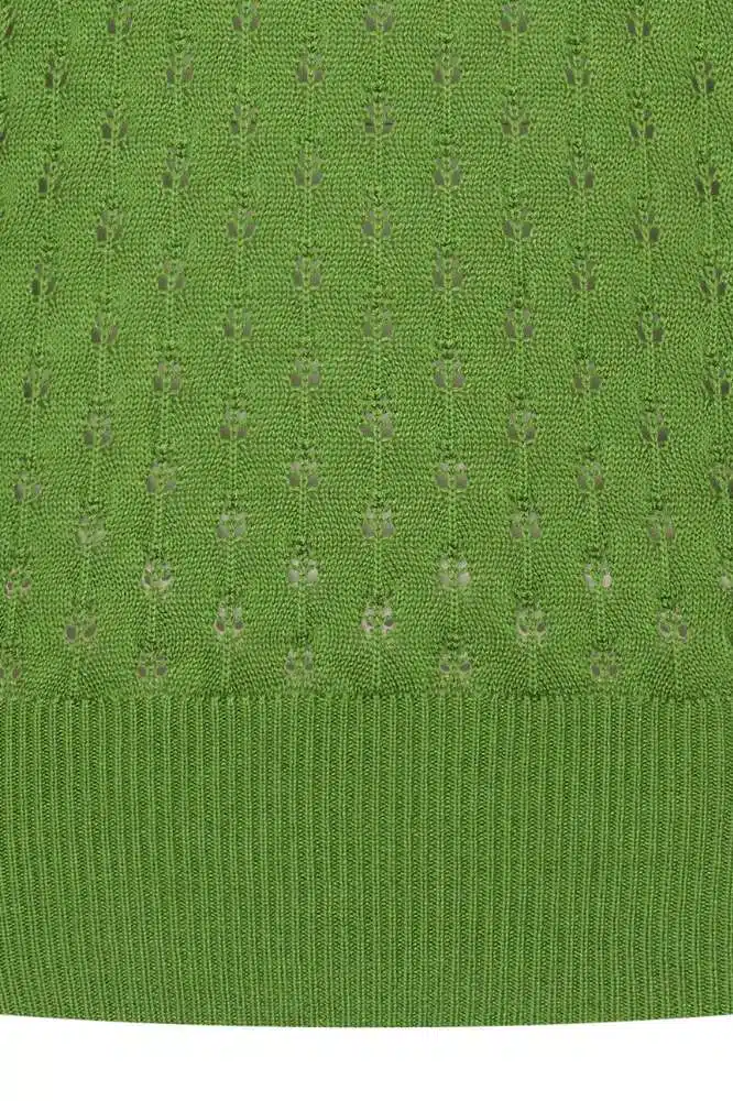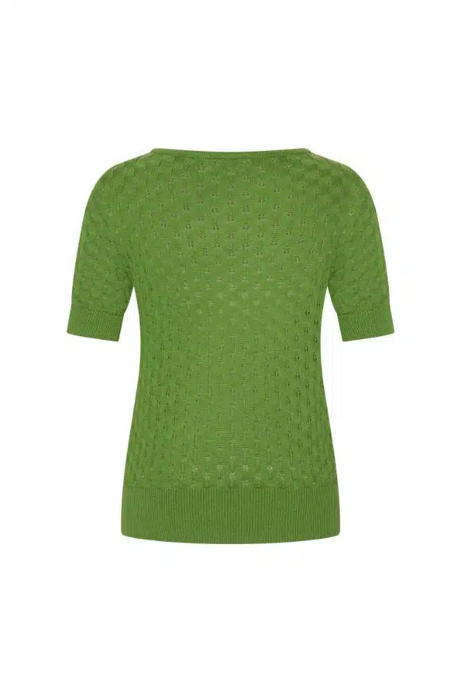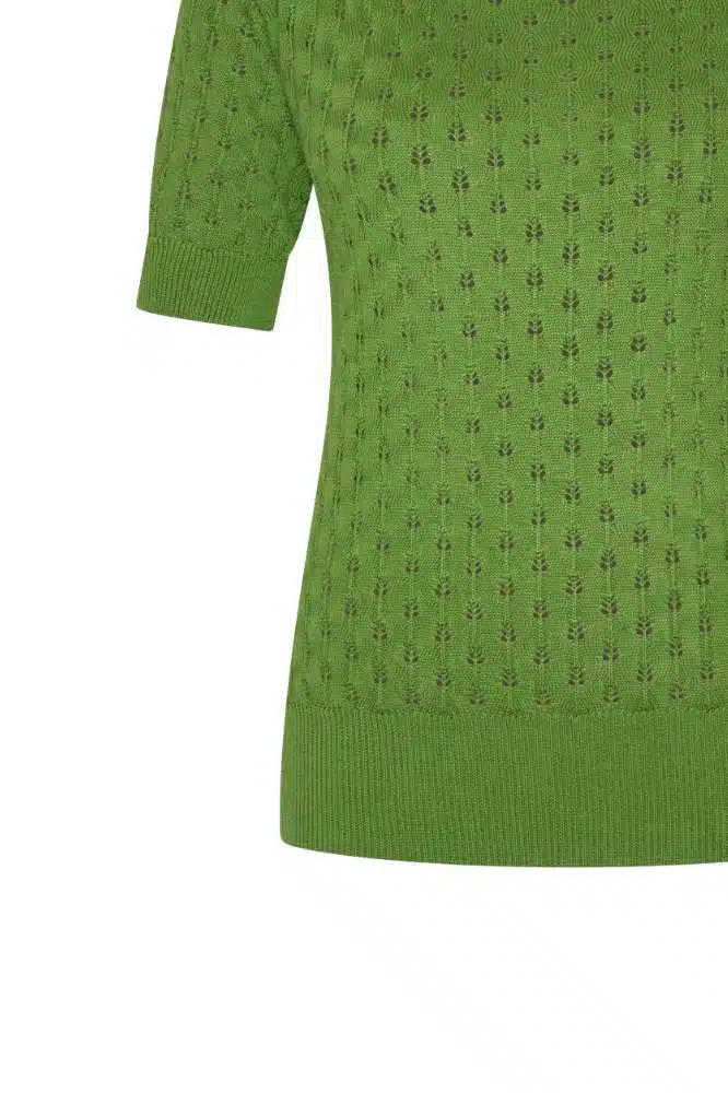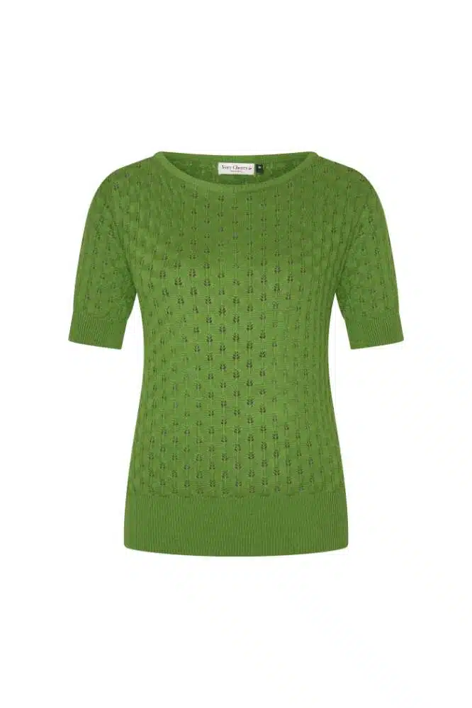 De Ella Top Olive van Very Cherry is een veelzijdig en elegant gebreid truitje dat niet mag ontbreken in je garderobe. Met zijn ronde hals, korte mouwen en subtiele ajourmotief straalt deze top tijdloze charme uit. De zachte mix van katoen en viscose zorgt voor een comfortabele pasvorm met lichte stretch, waardoor het truitje heerlijk aanvoelt op de huid en mooi in model blijft.