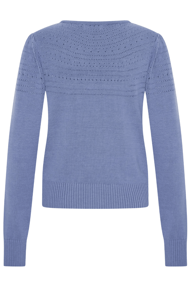 De Lucia V-Neck Cardigan Lavender is een klassiek, verfijnd vestje met een vrouwelijke uitstraling. Het opengewerkte ajourmotief op borst, schouders, rug en bovenaan de mouw geeft subtiele diepte, terwijl de lange pofmouwen en aangesloten pasvorm zorgen voor een elegant silhouet. De lavendeltint is zacht en makkelijk te combineren.