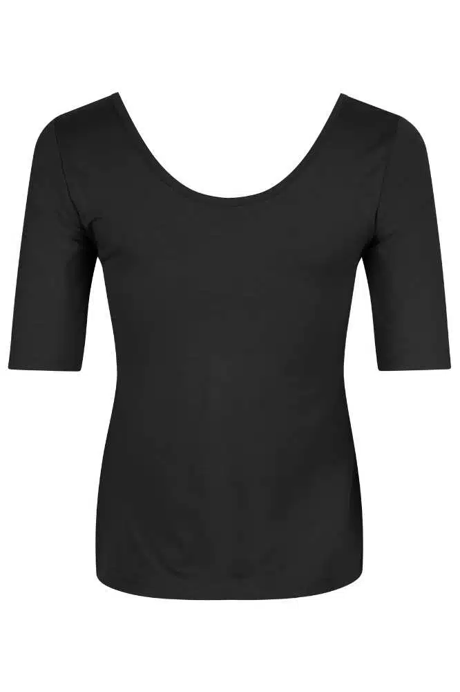 De Natalya Top is gemaakt van 94% viscose en 6% elastaan, wat zorgt voor een soepele, ademende en rekbare stof. De Tricot Deluxe stof voelt luxe aan en behoudt zijn vorm, zelfs na veelvuldig wassen. Viscose is een natuurlijk afgeleide vezel die bekend staat om zijn zijdezachte touch en ademend vermogen, wat de top uiterst comfortabel maakt.