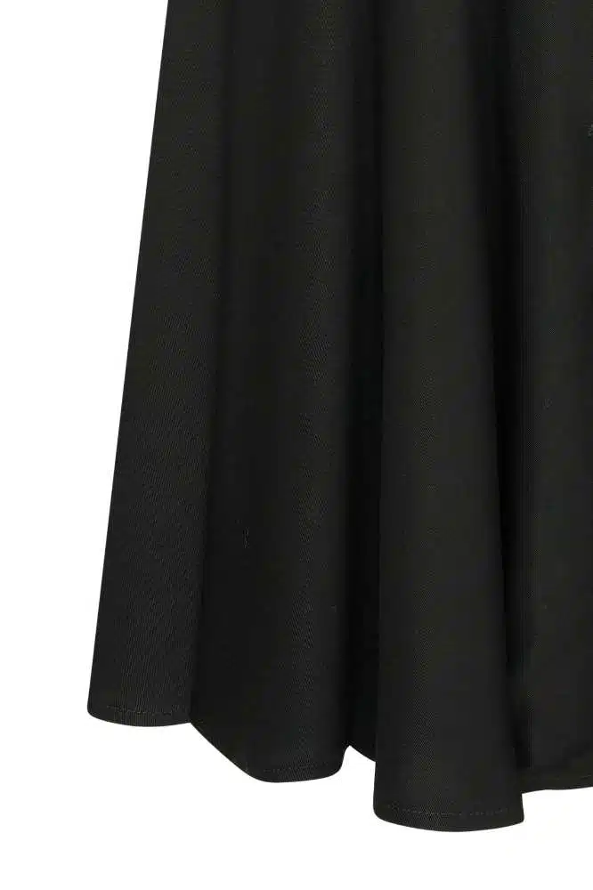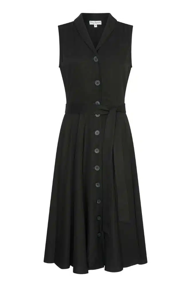 De Nova Dress Olette Black van Very Cherry is de optelsom van tijdloze elegantie en vrouwelijke charme. Deze prachtige doorknoopjurk is ontworpen met een aangesloten lijfje en een full-circle rok, wat zorgt voor een flatterend silhouet dat de taille benadrukt en elegant uitwaaiert naar beneden. De klassieke zwarte kleur maakt deze jurk perfect voor elke gelegenheid, van een chique diner tot een zomerse stadswandeling.