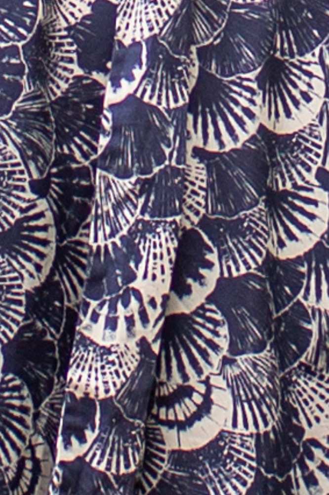 Kleur: Marineblauw met ecru schelpenprint