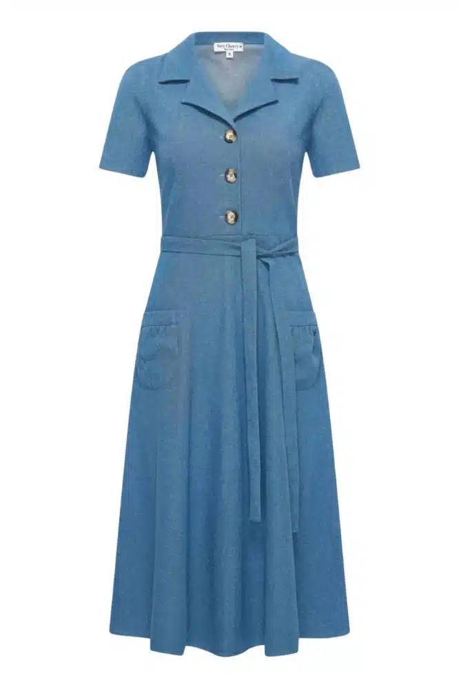 Very Cherry Revers Dress Midi Light Denim Indigo