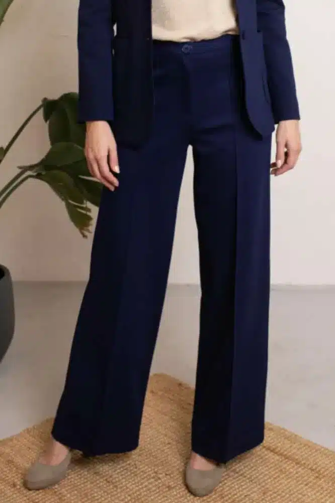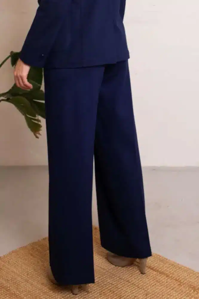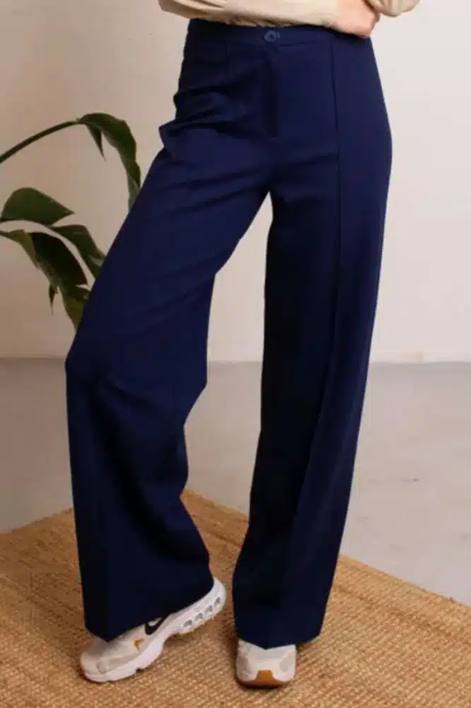 De Taylor Pants Navy Punty van Very Cherry is de perfecte combinatie van elegantie, comfort en veelzijdigheid. Met haar high-waist pasvorm, wijde pijpen en luxe uitstraling is deze broek een tijdloze toevoeging aan je garderobe. De subtiele pintuck aan de voorzijde geeft een verfijnd silhouet, terwijl de diepe navy kleur de broek geschikt maakt voor zowel casual als formele gelegenheden.