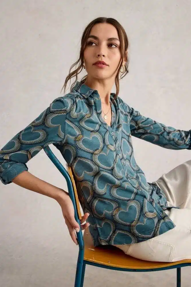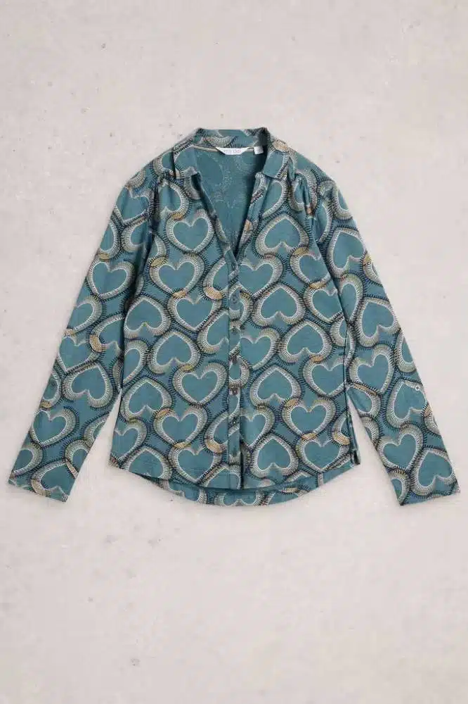 White Stuff Annie Jersey Shirt Blue Print - La Vie en Rose Damesmode