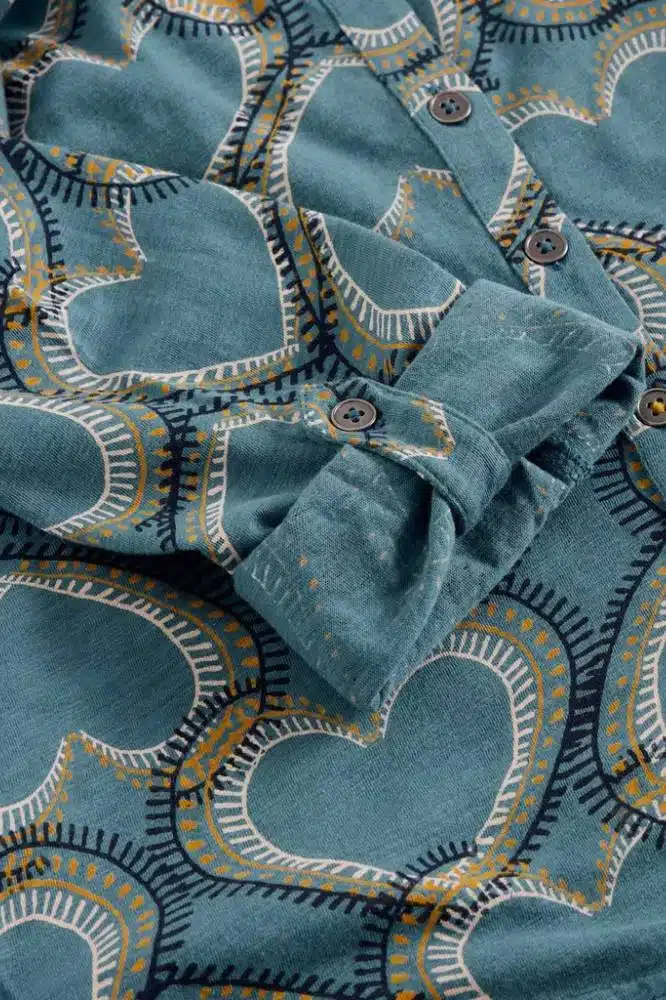 De stof is licht elastisch door de jersey-kwaliteit en geeft je daardoor de bewegingsvrijheid die je zoekt in een comfortabel shirt. Of je nu een drukke dag op kantoor hebt, een middag in de stad doorbrengt of gewoon ontspannen thuis bent – dit shirt voelt altijd goed. Dankzij het frisse blauwe dessin is het gemakkelijk te combineren met een jeans, chino of rok. Het is de perfecte balans tussen casual gemak en verzorgde stijl.