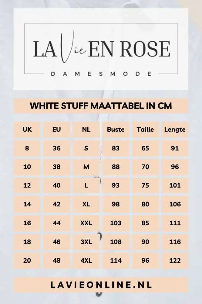 White Stuff staat bekend om hun tijdloze en comfortabele kleding met een focus op duurzaamheid. Het Britse merk gebruikt milieuvriendelijke materialen, zoals biologisch katoen, en zorgt ervoor dat ethische productie altijd centraal staat. Hun kleding biedt een unieke combinatie van stijl en comfort, perfect voor de bewuste consument.