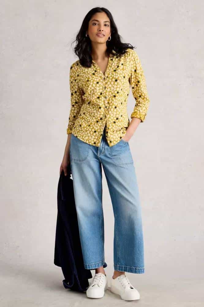 De Annie Jersey Shirt Chartreuse Multi van White Stuff is een stijlvolle en comfortabele keuze voor elke dag. Met zijn zachte biologische katoen en trendy ontwerp biedt dit overhemd een perfecte balans tussen mode en comfort. Het ontwerp is voorzien van een kraag, lange mouwen die kunnen worden opgerold met een bandje en knoopje, en een regular fit voor een casual maar nette look. De blouse valt semi-aansluitend, en combineert perfect met je favoriete jeans, rok of pantalon. Voor een fijne Laagjes Look, combineer je de Annie Jersey shirt met één van White Stuff’s mooie truien. Maak je look compleet met één van deze broeken!