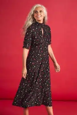 White Stuff Annie Jersey Shirt Dress Black Print