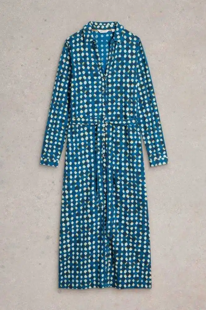 De Annie Jersey Shirt Dress Blue Print van White Stuff is een stijlvolle en veelzijdige toevoeging aan je garderobe. Deze jurk combineert het comfort van een jersey stof met een speels blauw patroon, waardoor het een perfecte keuze is voor zowel casual als meer formele gelegenheden. De elegante knielengte en de flatterende pasvorm zorgen ervoor dat je er altijd op je best uitziet, of je nu op kantoor bent of geniet van een ontspannen dagje uit.