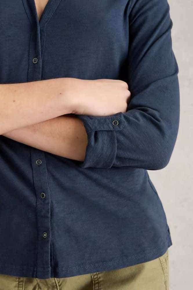 De Annie Jersey Shirt French Navy van White Stuff is een heerlijk zacht en comfortabel shirt met een stijlvolle uitstraling. Dankzij de soepele jersey katoen combineert dit shirt moeiteloos het draagcomfort van een T-shirt met de uitstraling van een blouse. De diepe navykleur maakt het een veelzijdige basic die je eindeloos kunt combineren – van casual tot gekleed.