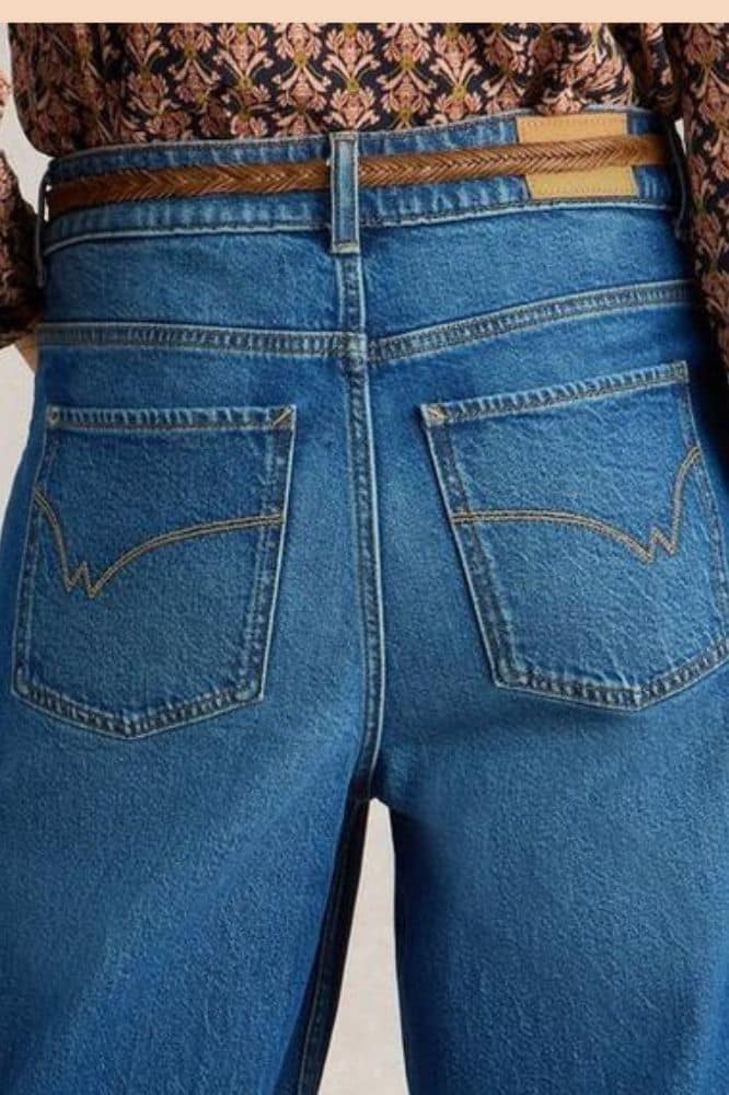 De jeans sluit met een rits en knoop, heeft klassieke vijf zakken en mooie contraststiksels voor dat authentieke denimgevoel. De kwaliteit is wat je van White Stuff mag verwachten: duurzaam gemaakt, met aandacht voor pasvorm, materiaal en stijl.