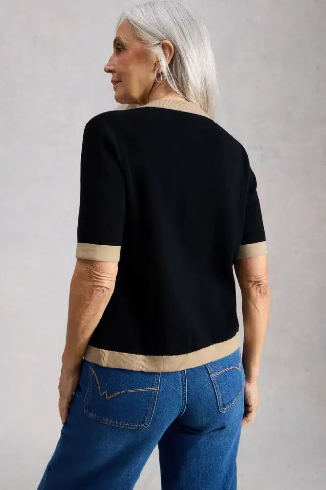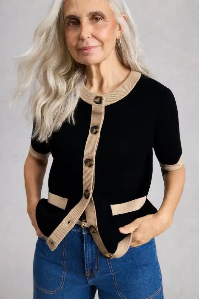 De Charlotte Short Sleeve Cardi laat zien dat een klassiek vest ook een frisse draai kan krijgen. White Stuff combineert hier de herkenbare cardiganstijl met korte mouwen en subtiele contrastdetails. Het resultaat is een vest dat zowel netjes als ontspannen aanvoelt — precies dat soort item dat je makkelijk combineert.