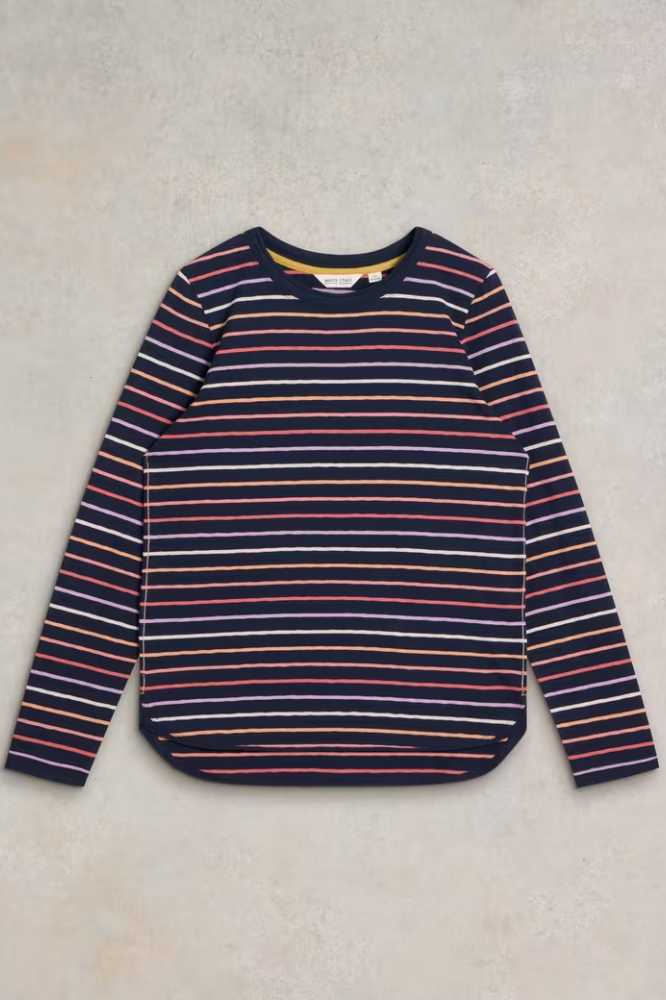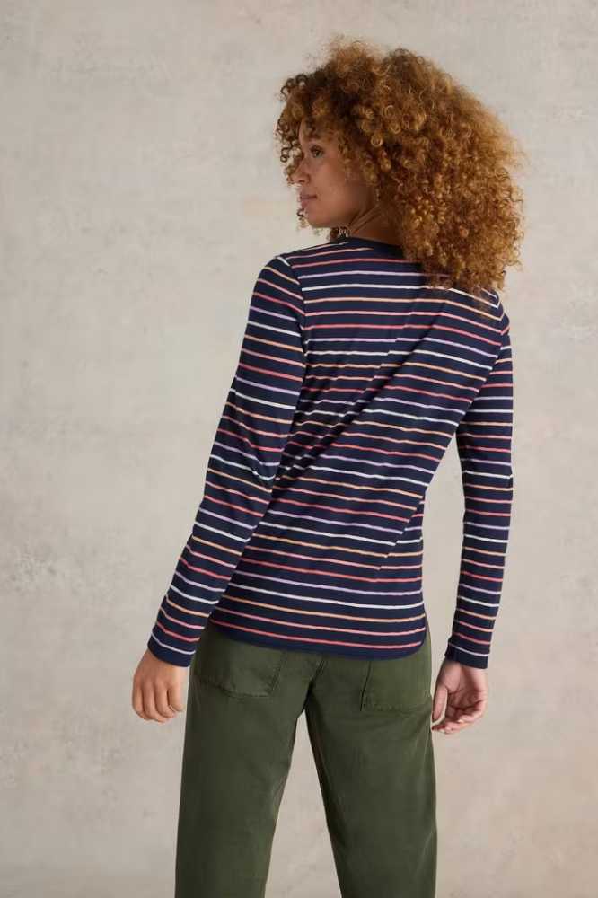 De Clara Stripe Navy Multi van White Stuff is gemaakt van 100% Fairtrade katoen. Dit betekent dat het katoen op een eerlijke en duurzame manier is geproduceerd, waarbij de boeren een eerlijke prijs krijgen en er aandacht is voor milieuvriendelijke landbouwmethoden. Het superzachte slub katoen biedt niet alleen optimaal comfort, maar draagt ook bij aan een verantwoorde modekeuze. Door te kiezen voor Fairtrade katoen, ondersteun je gemeenschappen en draag je bij aan een betere wereld.