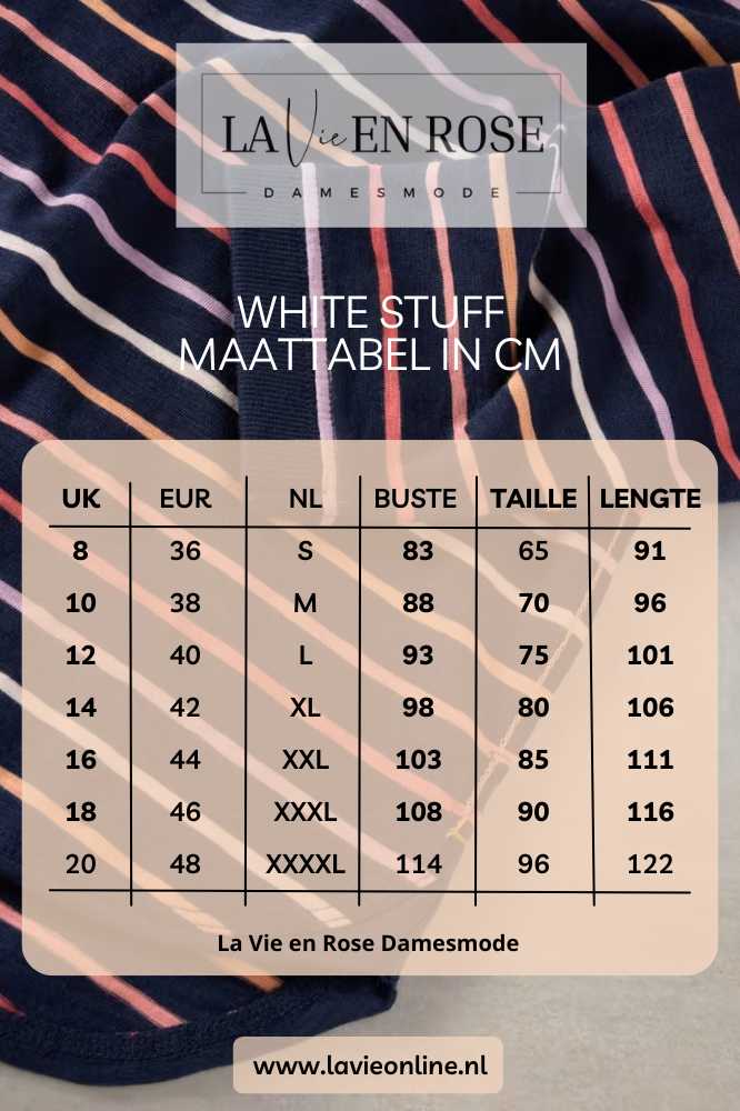White Stuff is een merk dat zich richt op het creëren van unieke, comfortabele en stijlvolle kleding voor elke dag. Met een sterke focus op kwaliteit en design, biedt White Stuff kledingstukken die niet alleen modieus zijn, maar ook een verhaal vertellen. Elk kledingstuk is met zorg en oog voor detail gemaakt, met het doel om klanten te inspireren en blij te maken.