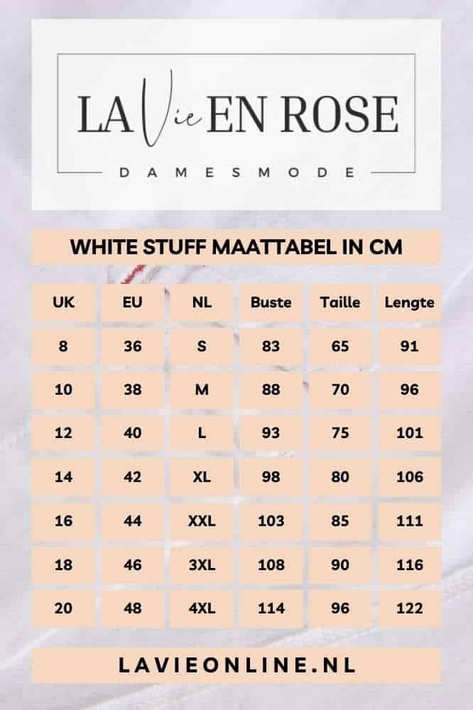 White Stuff staat bekend om zijn duurzame en tijdloze modecollecties. Het merk combineert hoogwaardige materialen, vakmanschap en aandacht voor detail om stijlvolle kleding te creëren die jarenlang meegaat. Door bewuste keuzes te maken in materialen en productieprocessen draagt White Stuff bij aan een mode-industrie met respect voor mens en milieu.