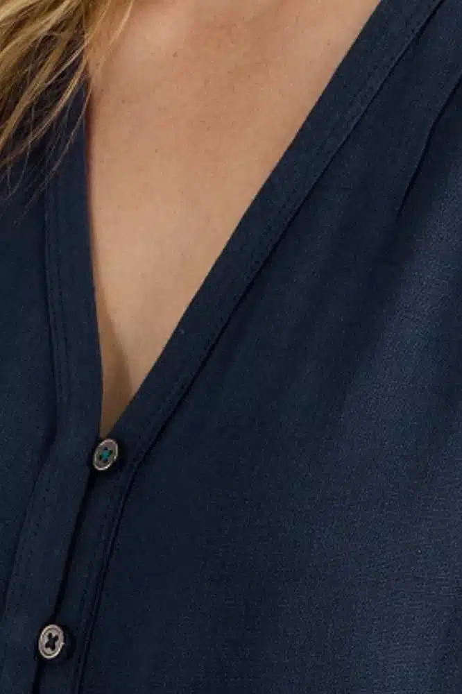 De Delilah Button Top is gemaakt van een duurzame en ademende mix van viscose (70%) en linnen (30%), wat zorgt voor een lichte, zachte en luchtige feel. Daarnaast bestaat het overige materiaal uit 59% biologisch katoen en 41% modal, twee milieuvriendelijke vezels die minder water en chemicaliën vereisen bij de productie.