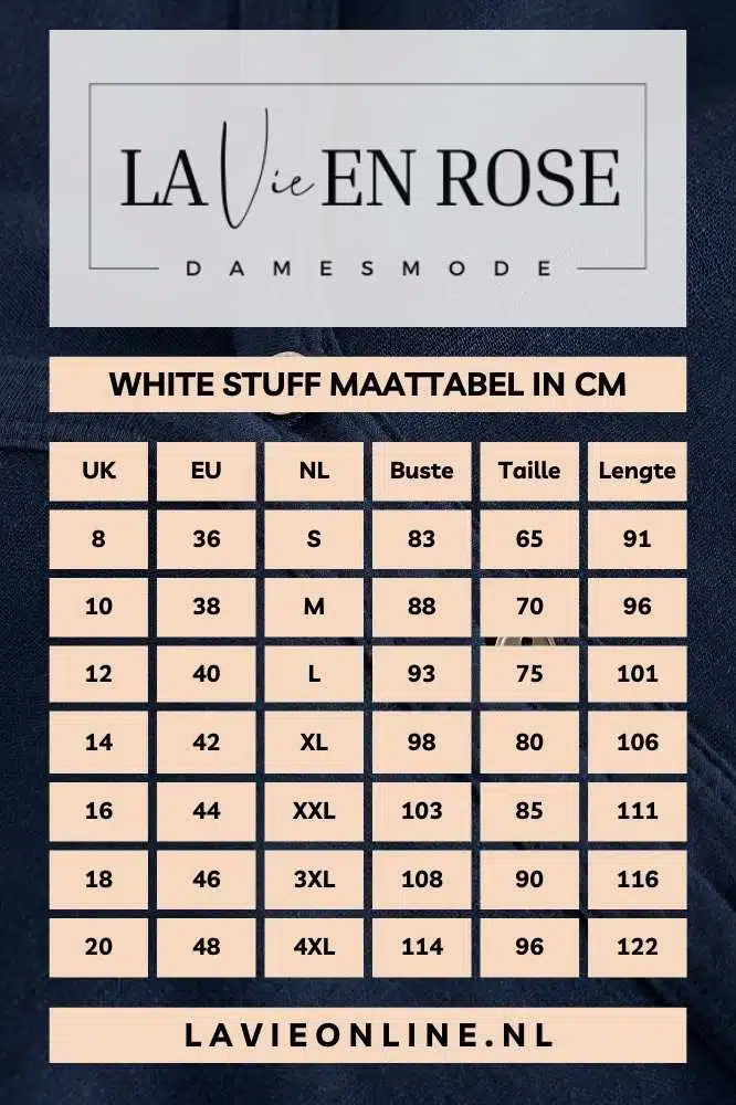 White Stuff staat bekend om zijn duurzame en tijdloze modecollecties. Het merk combineert hoogwaardige materialen, vakmanschap en aandacht voor detail om stijlvolle kleding te creëren die jarenlang meegaat. Door bewuste keuzes te maken in materialen en productieprocessen draagt White Stuff bij aan een mode-industrie met respect voor mens en milieu.