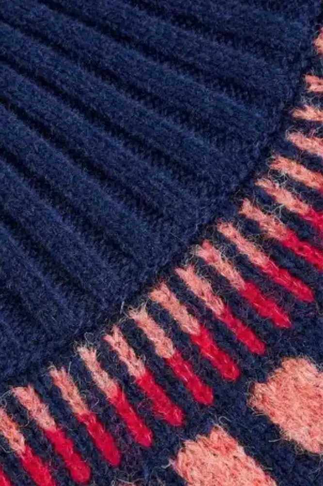 Met zijn rijke kleurcombinatie en zachte garens is dit zo’n knit waar klanten steeds opnieuw naar grijpen. Mooi te combineren met denim, corduroy of een nette pantalon — en net zo leuk over een jurk.