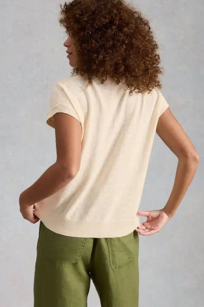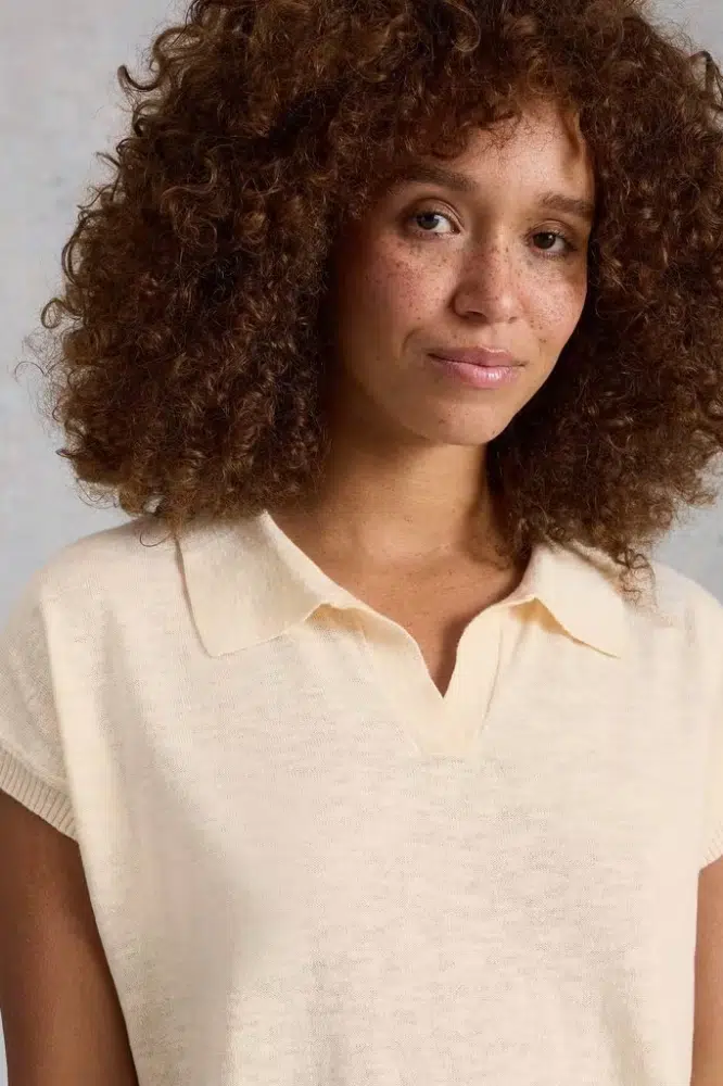 White Stuff Ginni Linen Polo Tee Natural White