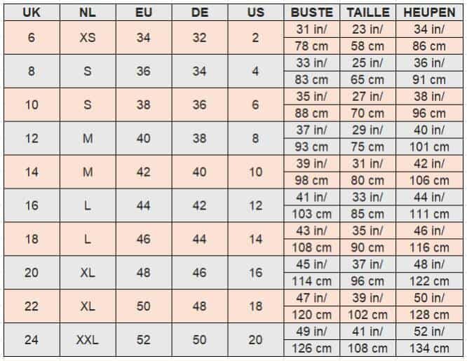 • Lengte maat 12: ca. 125 cm (schouder-hals tot zoom)