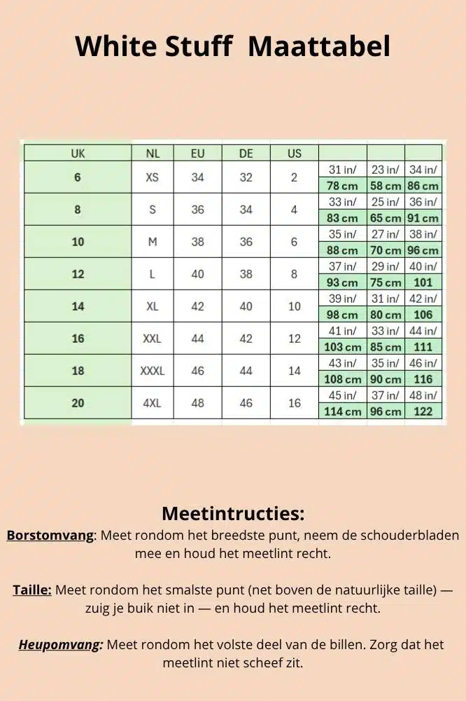 White Stuff is een Brits merk dat bekendstaat om zijn speelse details, draagcomfort en kwaliteit. Sinds de jaren ’80 vertaalt het merk klassieke stijlen naar eigentijdse mode met oog voor natuurlijke materialen. De Kitty Stripe Cashmere Jumper is daar een mooi voorbeeld van: een luxe trui die zowel stijlvol als praktisch is, en perfect past in een garderobe die tijdloosheid en kwaliteit combineert.