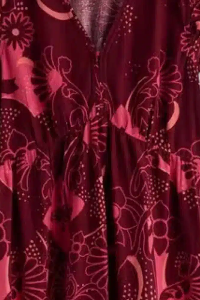 Om de kwaliteit en levensduur van deze jurk te behouden, wordt aanbevolen deze in de machine te wassen op een fijnwasprogramma met koud water. Gebruik een mild wasmiddel en vermijd bleekmiddelen om de kleur en de integriteit van de stof te behouden. Laat de jurk aan de lucht drogen op een vlakke ondergrond om uitrekken of vervorming te voorkomen. Strijken kan op een lage temperatuur indien nodig, bij voorkeur aan de binnenkant om de print te beschermen. Door deze zorginstructies te volgen, blijft je jurk er seizoen na seizoen als nieuw uitzien.