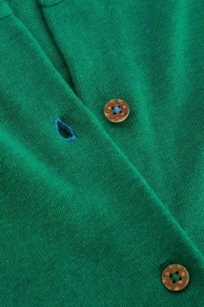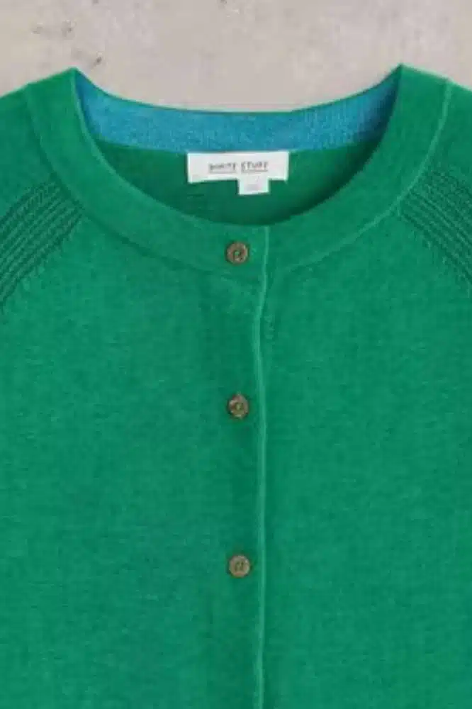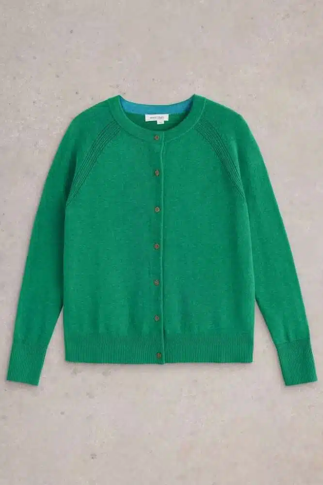 Dun genoeg in om je tas mee te nemen maar warm genoeg als het wat frisser wordt. Precies daarom zijn wij dól op cardigans. Om precies te zijn, op de Lulu Cardi Bright Green van White Stuff! De Lulu Cardi van het Britse merk White Stuff is een veelzijdige en geliefde aanvulling op elke garderobe. Met zijn unieke mix van comfort, stijl en duurzaamheid is dit vest een ware must-have voor vrouwen die op zoek zijn naar zowel praktische als trendy kledingstukken.