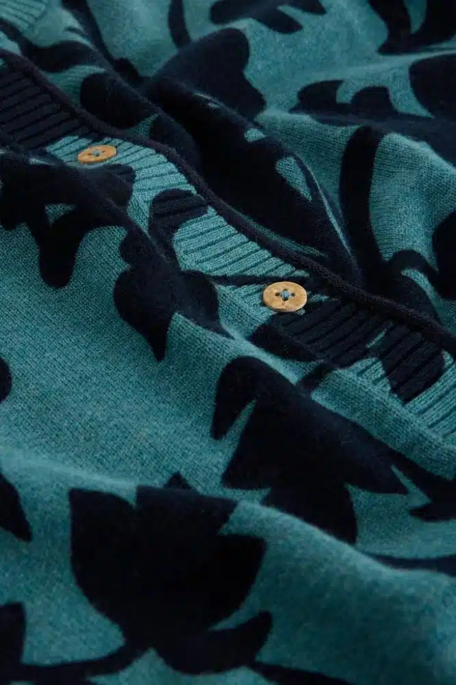 De Lulu Print Cardi is gemaakt van 100% biologische katoen. Dit materiaal wordt geteeld zonder schadelijke pesticiden en voelt heerlijk zacht en ademend aan. Het is een bewuste keuze die bijdraagt aan een verantwoorde garderobe, zonder dat stijl en draagcomfort worden ingeleverd.