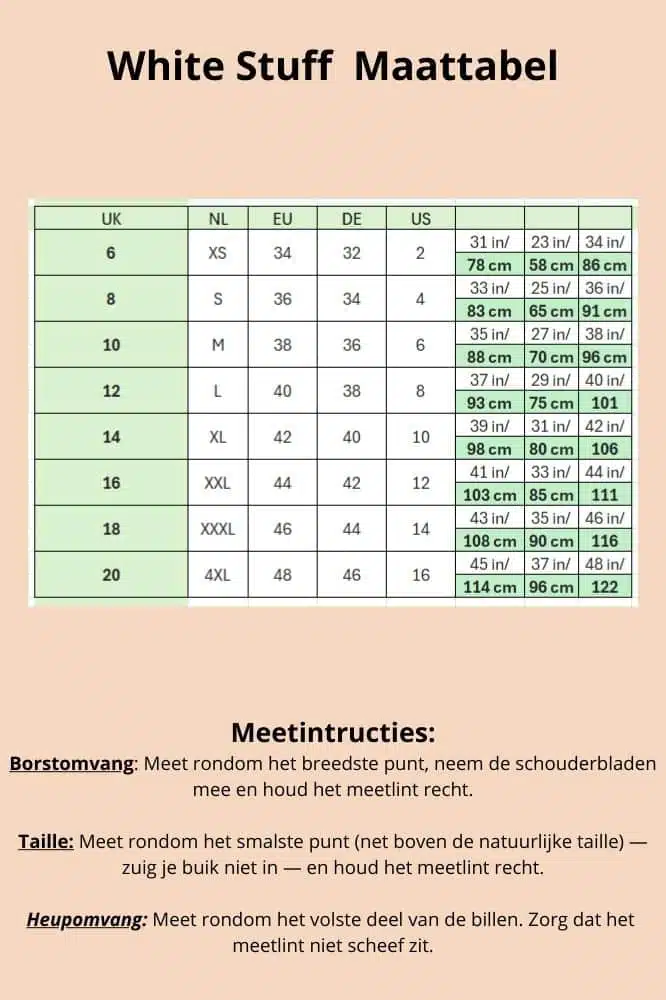 • Model draagt: maat 10, lengte 1,74 m