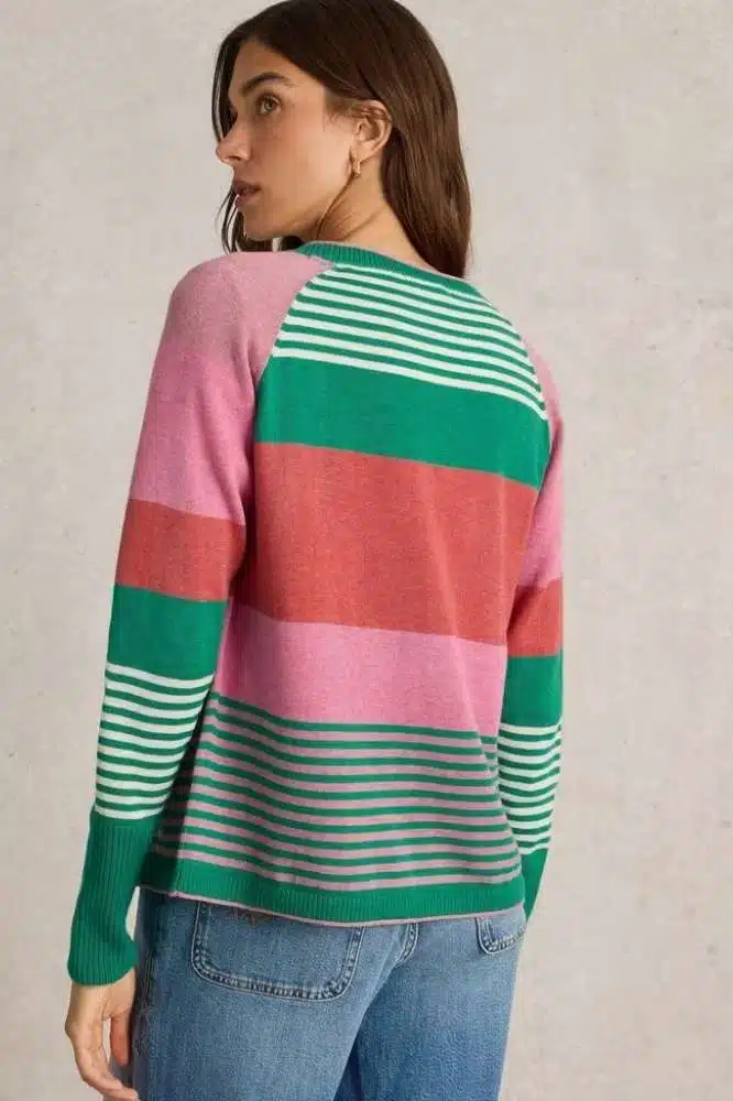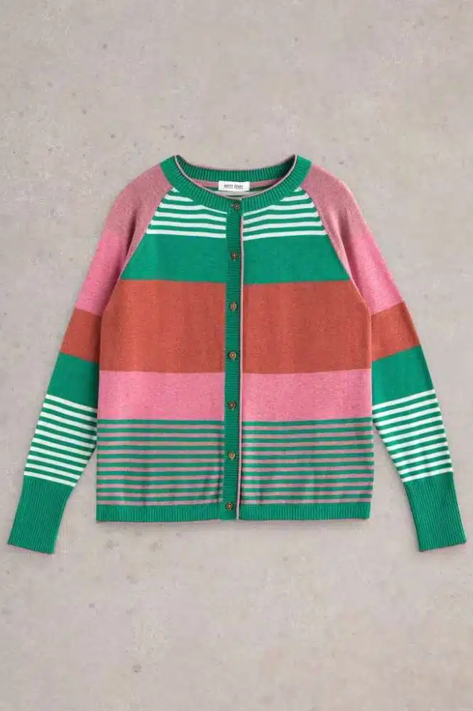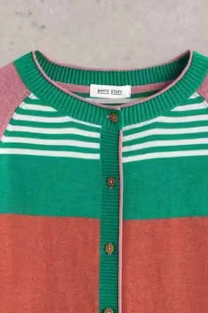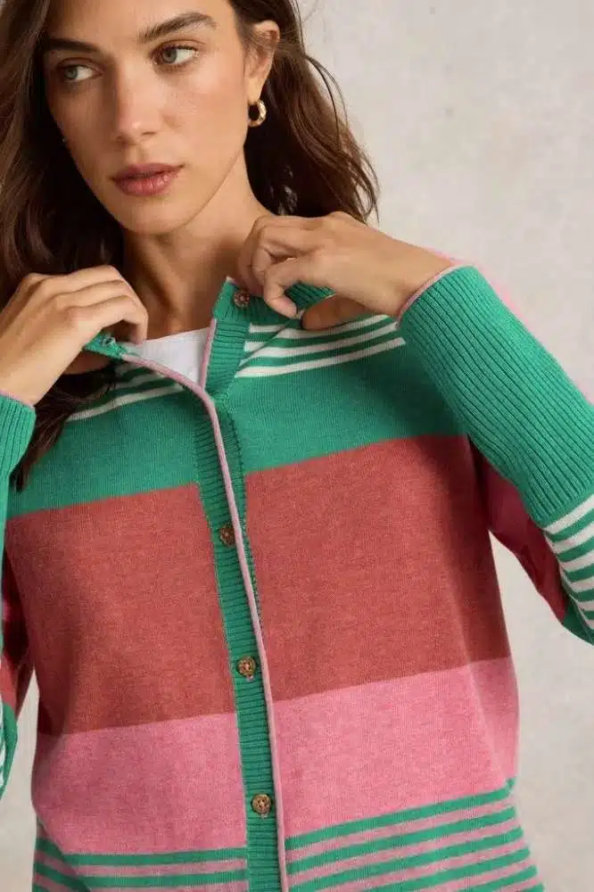 Dun genoeg in om je tas mee te nemen maar warm genoeg als het wat frisser wordt. Precies daarom zijn wij dól op cardigans. Om precies te zijn, op de Lulu Stripe Cardi Pink Multi van White Stuff! De Lulu Cardigan van het Britse merk White Stuff is een veelzijdige en geliefde aanvulling op elke garderobe. Met zijn unieke mix van comfort, stijl en duurzaamheid is dit vest een ware must-have voor als je op zoek bent naar zowel praktische als trendy kledingstukken.