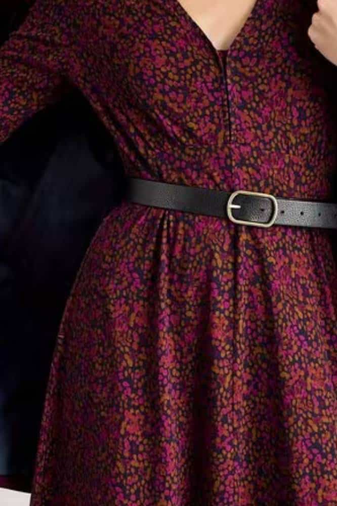 De jurk heeft een klassieke pasvorm met een elegante V-hals en lange mouwen, waardoor het een tijdloze uitstraling krijgt. Het model valt tot halverwege de kuit (midi-lengte) en heeft een lengte van ongeveer 120 cm bij maat 12. De Pink Multi print zorgt voor een frisse, vrouwelijke uitstraling die speels en toch stijlvol oogt. Dankzij de soepele jersey-stof valt de jurk mooi langs het lichaam en biedt ze veel bewegingsvrijheid.