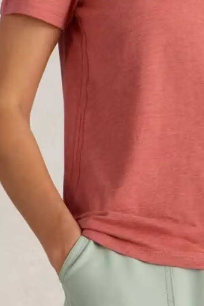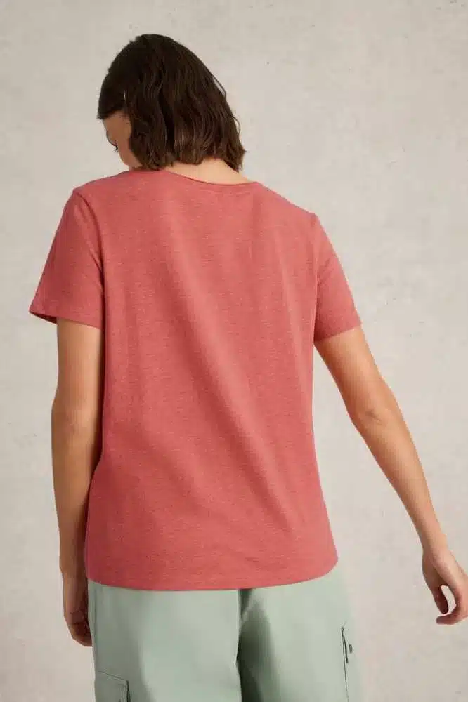 De warme Mid Coral tint geeft je outfit een frisse en zomerse uitstraling, perfect om te combineren met zowel neutrale als gedurfde kleuren. Draag dit T-shirt met een jeans voor een casual look of onder een blazer voor een meer geklede uitstraling.