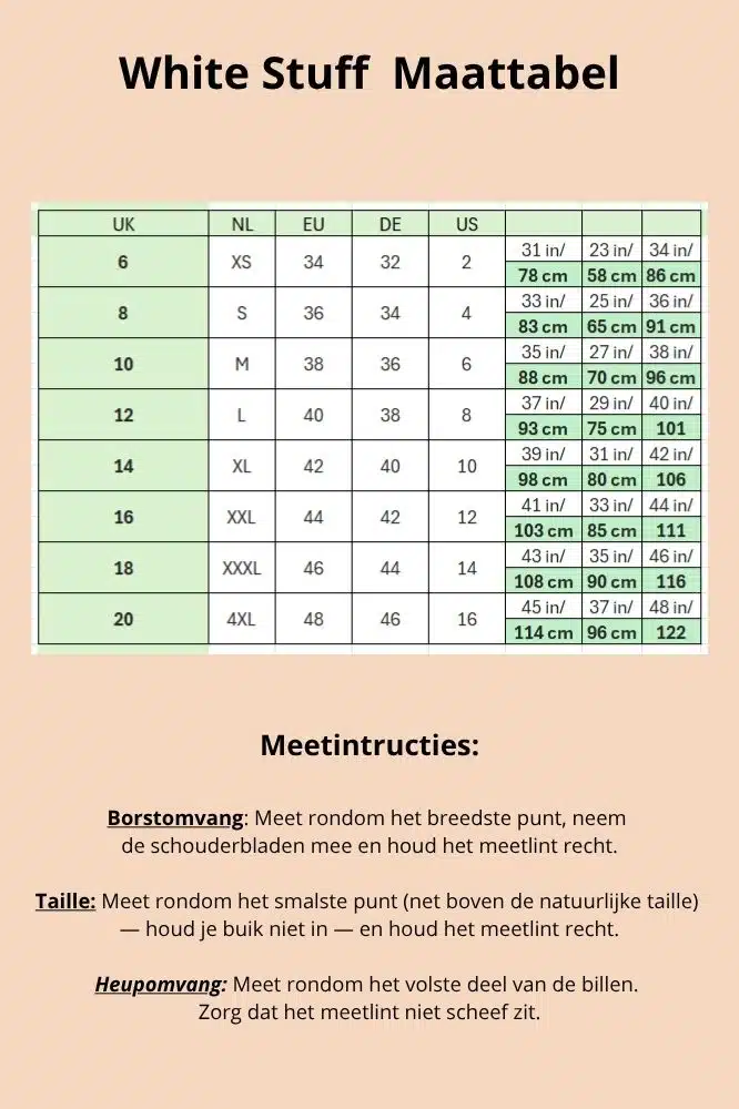White Stuff Maattabel - La Vie en Rose Damesmode