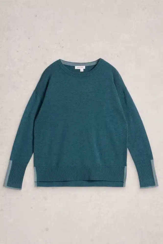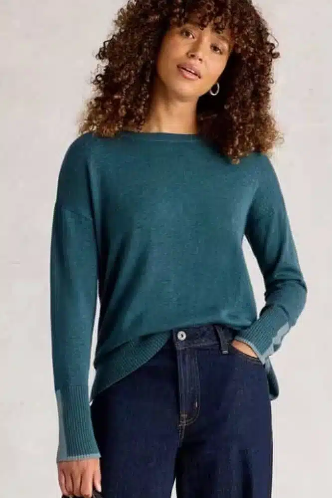 De Olive Jumper Mid Blue van White Stuff is een heerlijk zachte trui met een ontspannen pasvorm en een tijdloze uitstraling. Deze knit is ontworpen met verlaagde schoudernaden voor een casual, moeiteloze look en een comfortabele fit die soepel valt. De mid-blue tint is fris, veelzijdig en combineert prachtig met denim, neutrale tinten of een rok met print. Een perfecte keuze voor het tussenseizoen: warm genoeg voor frisse dagen, maar luchtig genoeg om ook binnen te dragen.