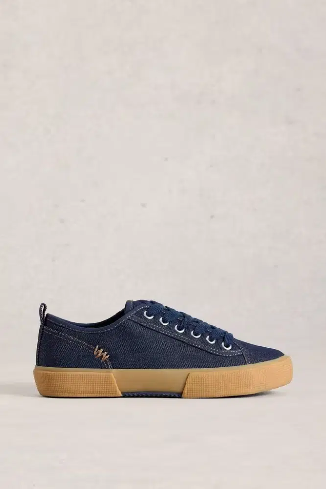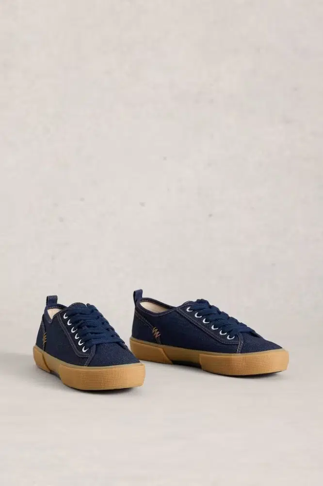 White Stuff Pippa Canvas Lace Up Trainers Dark Denim