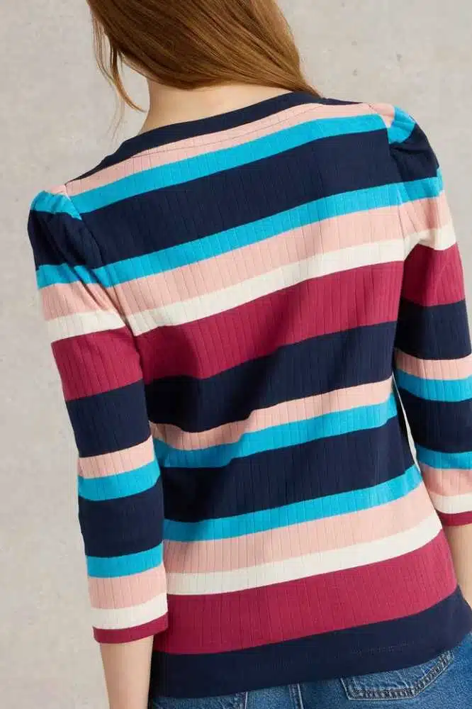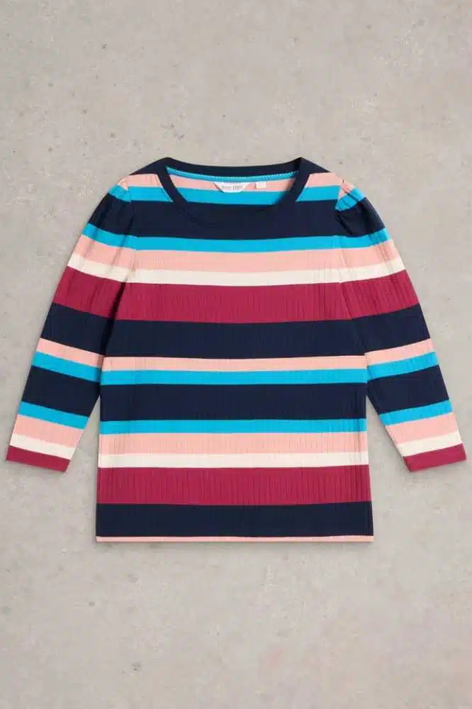 De Puff Sleeve LS Tee van White Stuff is een prachtige toevoeging aan elke garderobe. Deze top combineert casual comfort met een vleugje elegantie dankzij de pofmouwen en de fijne, zachte stof. De gestreepte print in mooie blauwtinten maakt deze tee veelzijdig en perfect voor zowel alledaagse als meer geklede gelegenheden. Draag hem met jeans voor een casual look of combineer met een rok voor een meer verfijnde stijl.