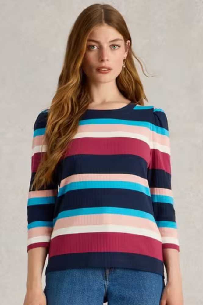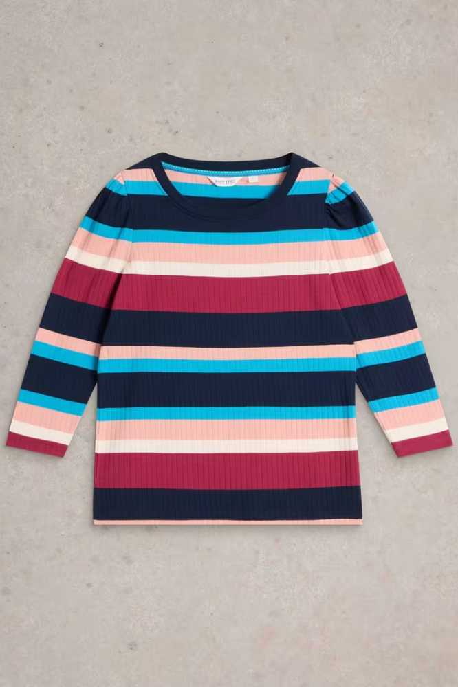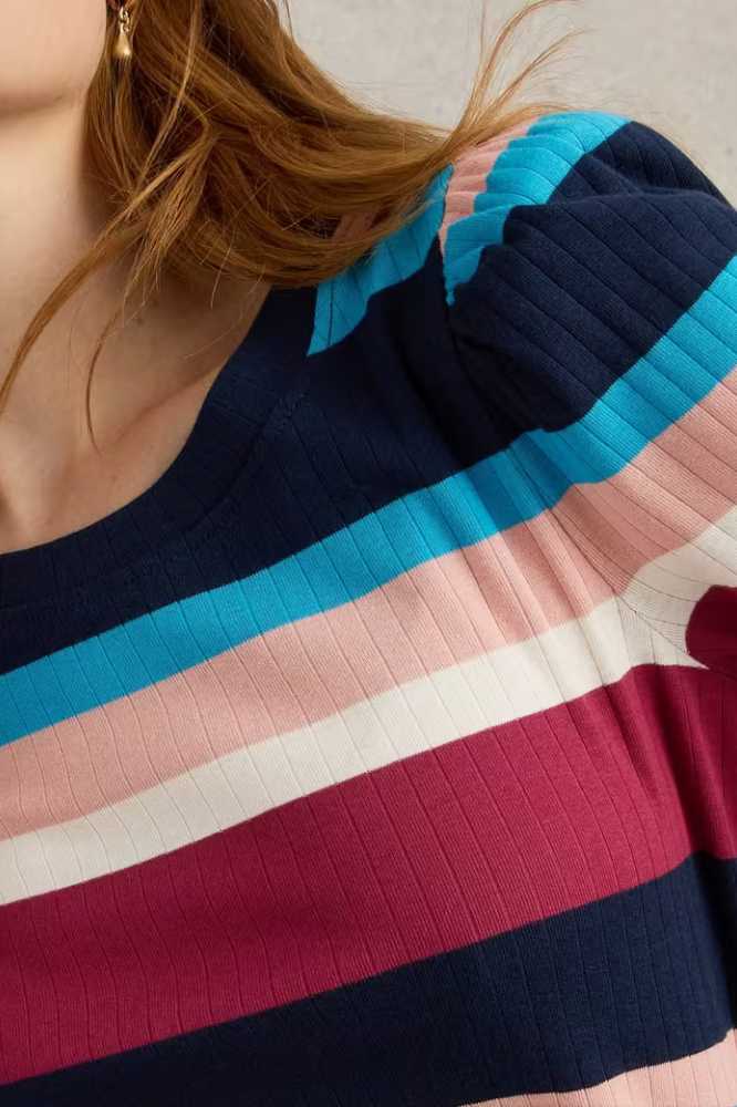 White Stuff Puff Sleeve LS Tee Blue Multi