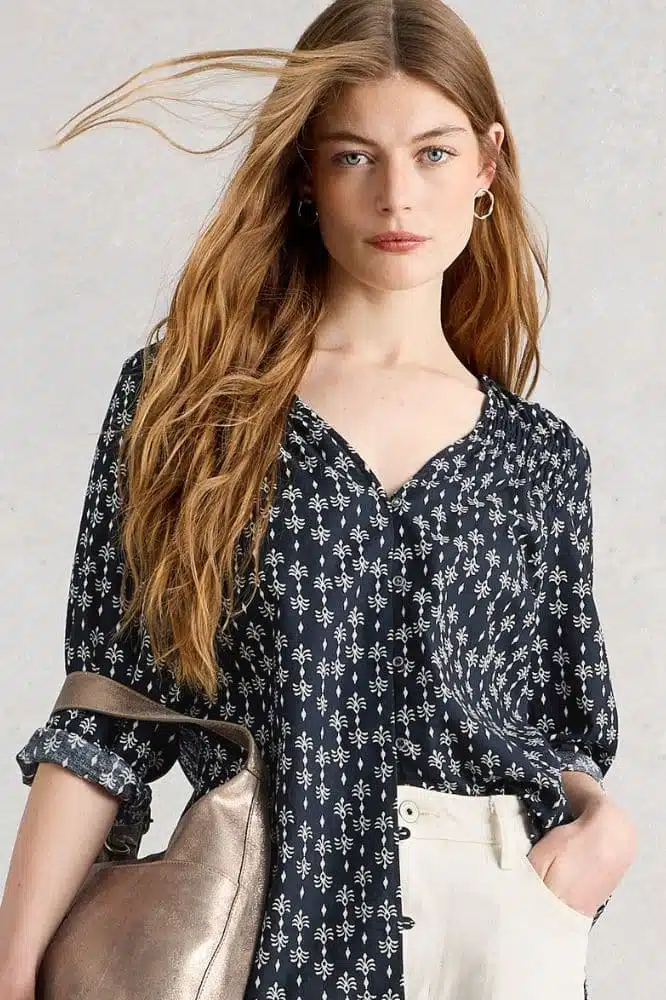 White Stuff Rae Organic Cotton Top Nay Print