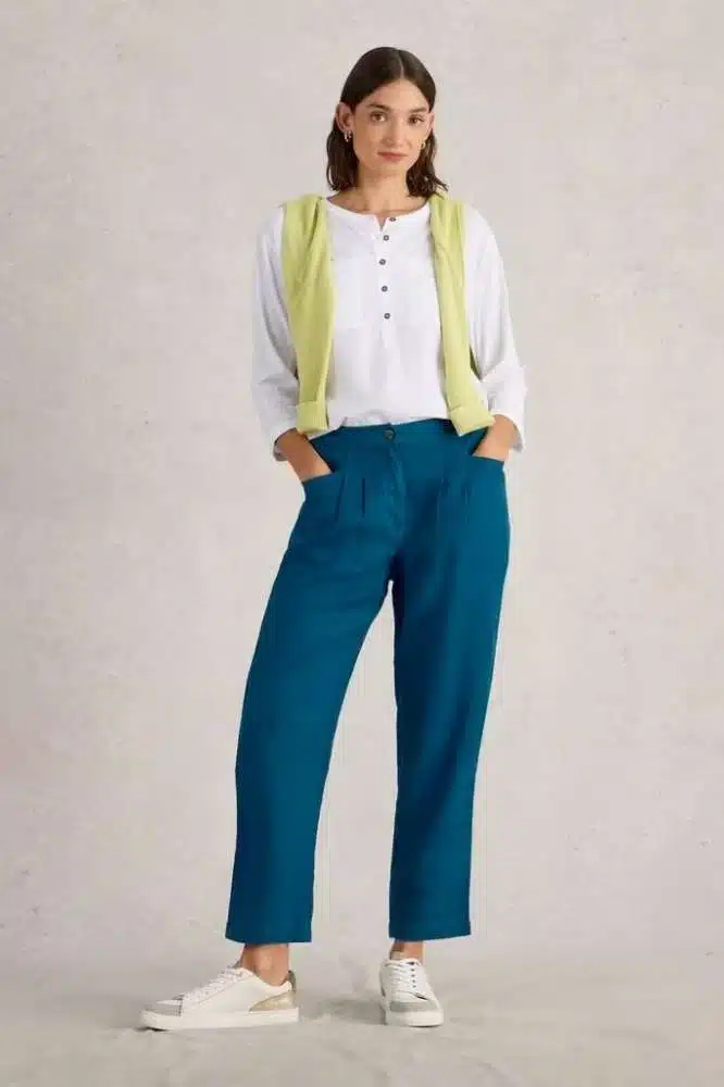De Rowena Linen Trouser Bright Blue van White Stuff biedt niet alleen comfort en stijl, maar ook de luchtige ademendheid van linnen. In een slimme taps toelopende pasvorm zijn deze broeken ontworpen voor zorgeloos plezier in de zon, omdat White Stuff begrijpt dat genieten van de zomer een serieuze aangelegenheid is.