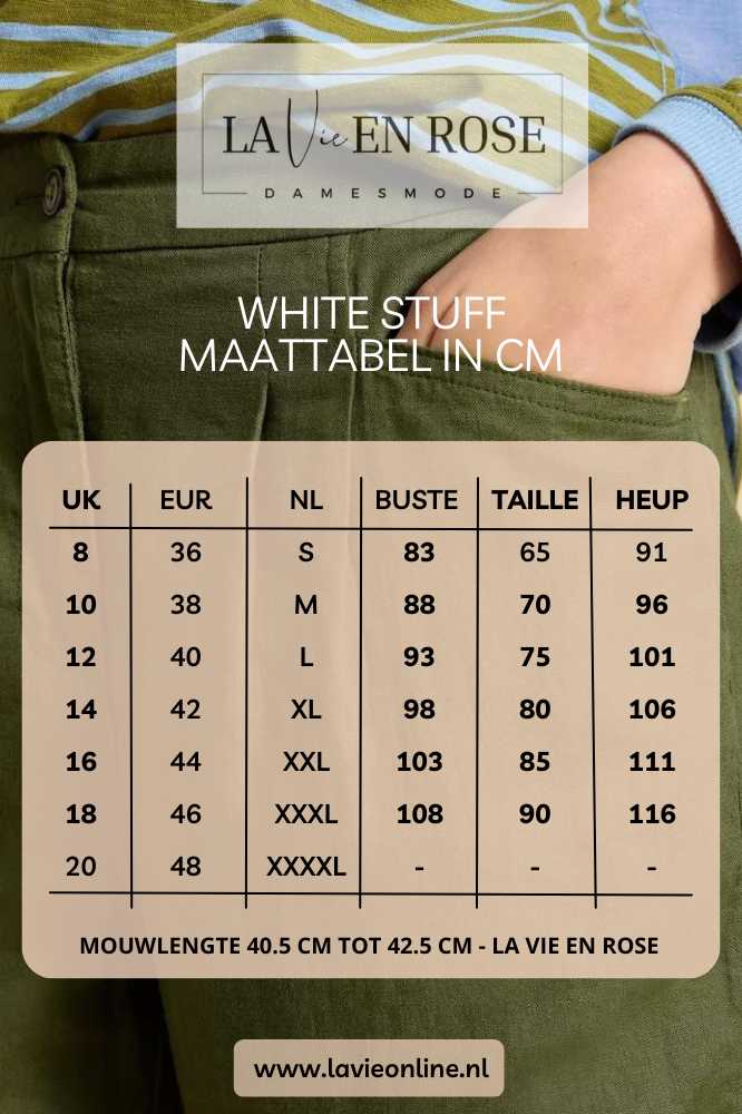 White Stuff, een merk dat bekend staat om zijn veelzijdige ontwerpen en hoogwaardige materialen, belichaamt met de Rowena Linen Trouser zijn ethos van casual elegantie. Als een toonaangevend merk in duurzame mode, streeft White Stuff ernaar om comfort, stijl en milieubewustzijn te combineren.