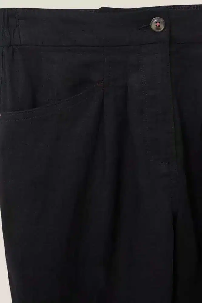 De Rowena Linen Trouser Pure Black is vervaardigd uit 100% linnen, wat niet alleen zorgt voor ongeëvenaard comfort maar ook voor een duurzaam en ademend materiaal. Linnen is bekend om zijn natuurlijke oorsprong en biologisch afbreekbare eigenschappen, waardoor het een milieubewuste keuze is. Het dragen van deze broek betekent niet alleen genieten van de zachtheid van linnen, maar ook bijdragen aan een duurzamere mode-industrie.