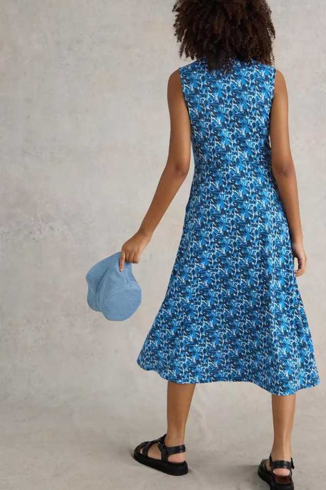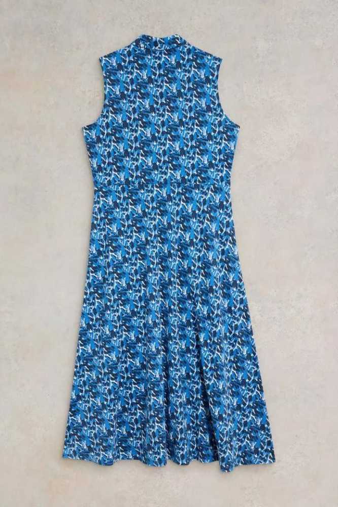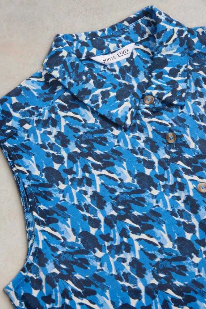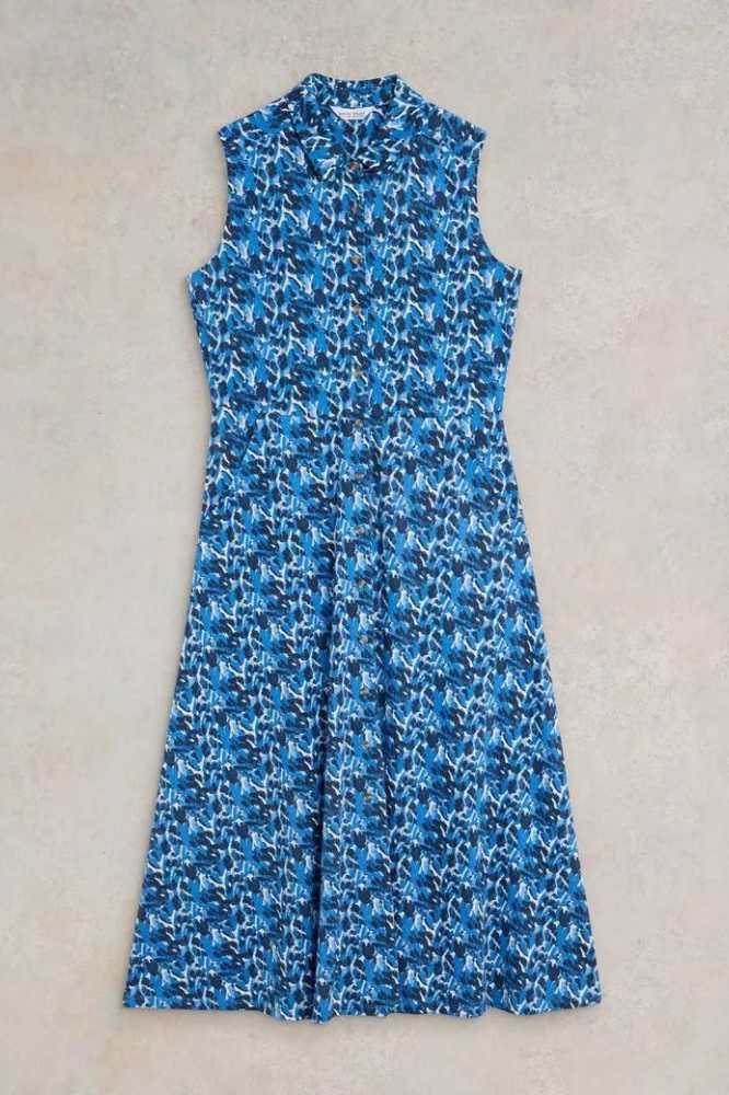 Ontdek de veelzijdige en stijlvolle Rua Jersey Shirt Dress Blue Print van White Stuff. Deze mouwloze jurk is voorzien van een fantastische print die een mix is van dierenprint, abstracte kunst en onderwatermotieven. De jurk heeft ook verborgen zakken, wat het extra praktisch maakt.