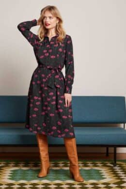 Gemaakt van een blend van 50% biologisch katoen en 50% modal, biedt deze jurk niet alleen comfort, maar ook duurzaamheid. De stof heeft een lichte stretch, waardoor het mooi aansluit op het lichaam. Met een klassieke pasvorm, kraag en midi-lengte is deze jurk perfect voor verschillende gelegenheden.