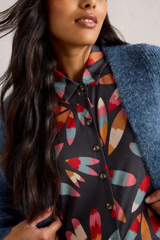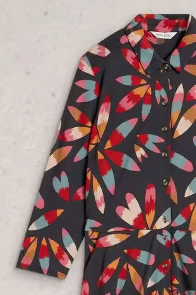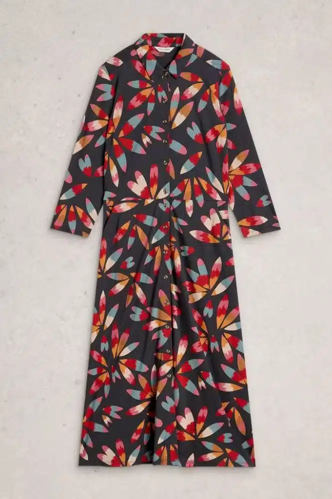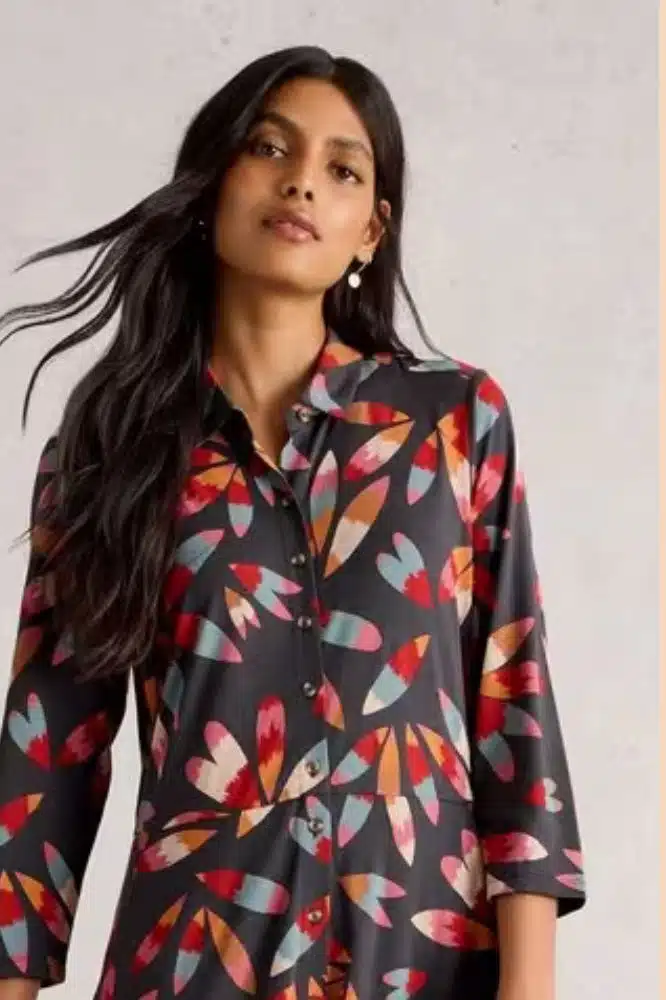 De Rua Jersey Shirt Dress Grey MLT van White Stuff is een tijdloze toevoeging aan je garderobe. Deze jurk, met een elegante midi-lengte, combineert moeiteloos stijl en comfort. De 3/4-mouwen en het klassieke overhemdontwerp maken het een veelzijdige keuze voor verschillende gelegenheden. Het zachte, ademende materiaal maakt het ideaal voor dagelijks gebruik, terwijl de opvallende navy print een vleugje verfijning toevoegt.